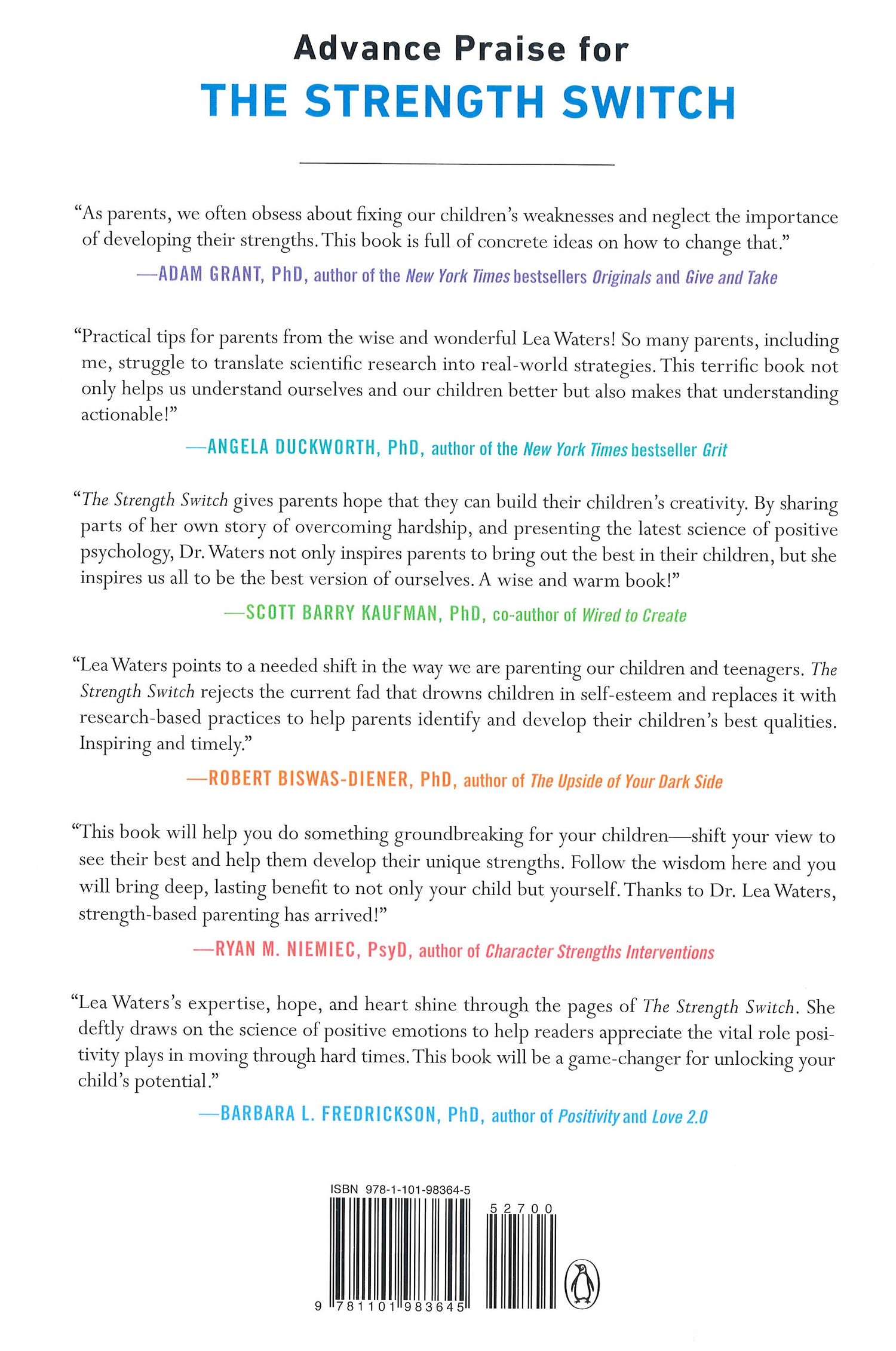 As a strengths-based scientist for more than twenty years, ten of them spent focusing on strengths-based parenting, Waters has seen how this approach enhances self-esteem and energy in both children and teenagers. Yet more on the plus side: parents find it a particularly exciting and rewarding way to raise children. With many suggestions for specific ways to interact with your kids, Waters demonstrates how to discover strengths and talents in our children, how to use positive emotions as a resource, how to build strong brains, and even how to deal with problem behaviors and talk about difficult situations and emotions. As revolutionary yet simple as Mindset and Grit, The Strength Switch will show parents how a small shift can yield enormous results.