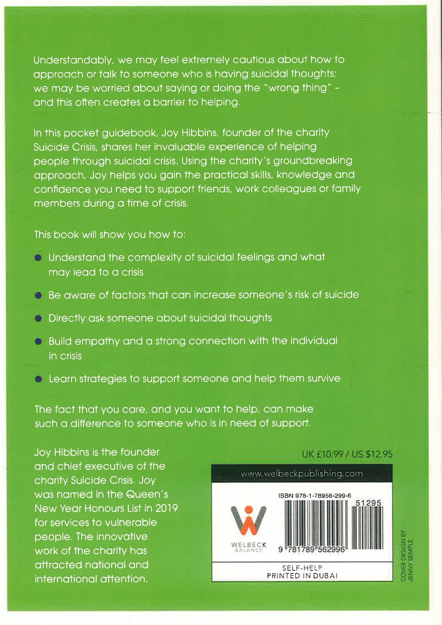 In this comprehensive guidebook, Joy Hibbins (the founder of an award-winning Suicide Crisis Centre which has attracted international attention) shares her invaluable experience of helping people through suicidal crisis.