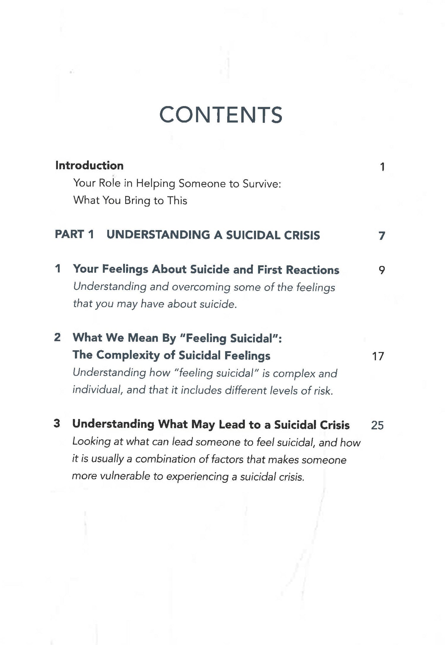 Equally popular with the public and professionals, the book provides the reader with strategies and skills to help someone through a period of suicidal crisis.