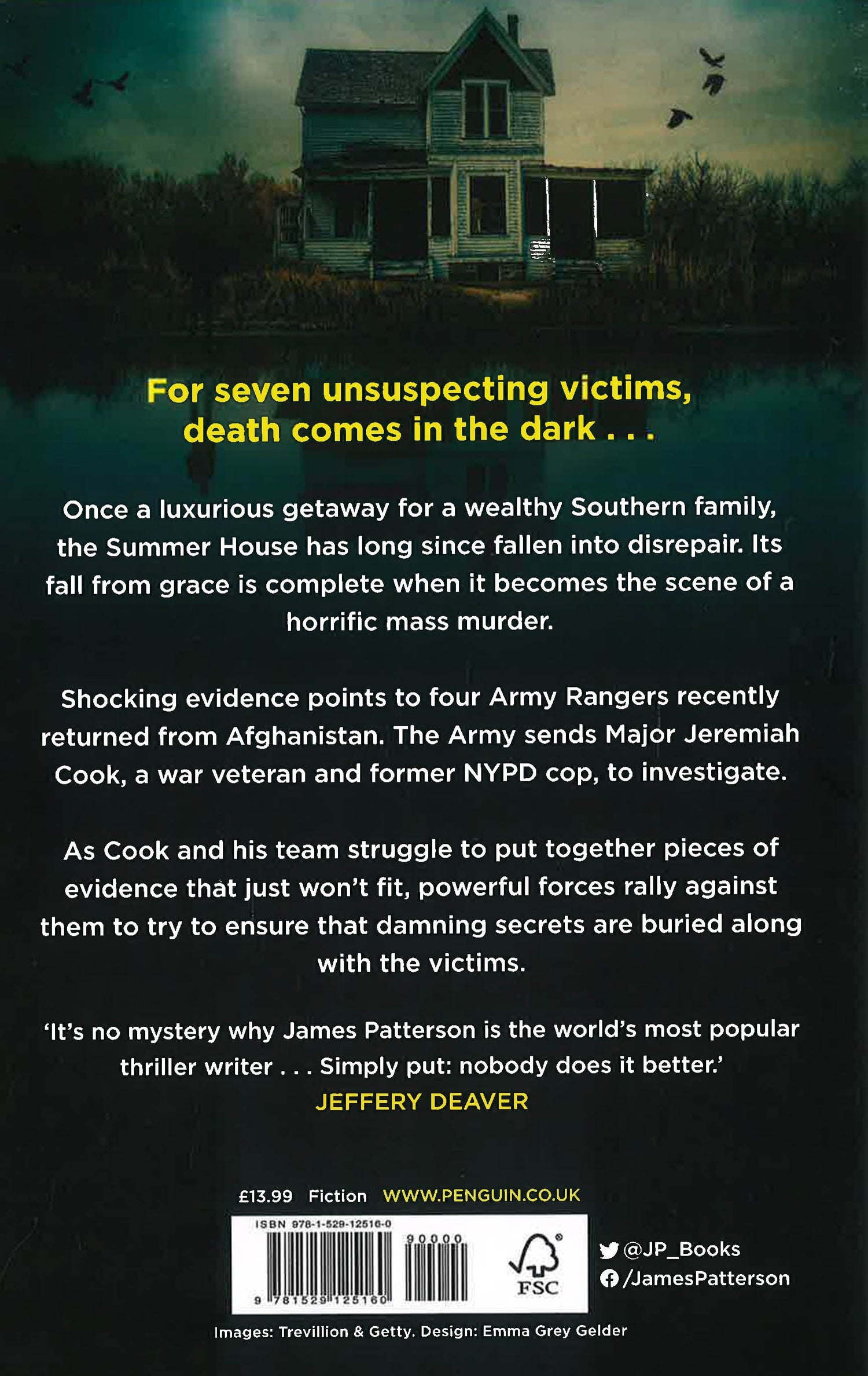 For seven unsuspecting victims, death comes in the dark . . .Once a luxurious getaway for a wealthy Southern family, the Summer House has long since fallen into disrepair. Its fall from grace is complete when it becomes the scene of a horrific mass murder. Shocking evidence points to four Army Rangers recently returned from Afghanistan. The Army sends Major Jeremiah Cook, a war veteran and former NYPD cop, to investigate.As Cook and his team struggle to put together pieces of evidence that just won't fit, powerful forces rally against them to try to ensure that damning secrets are buried along with the victims.
