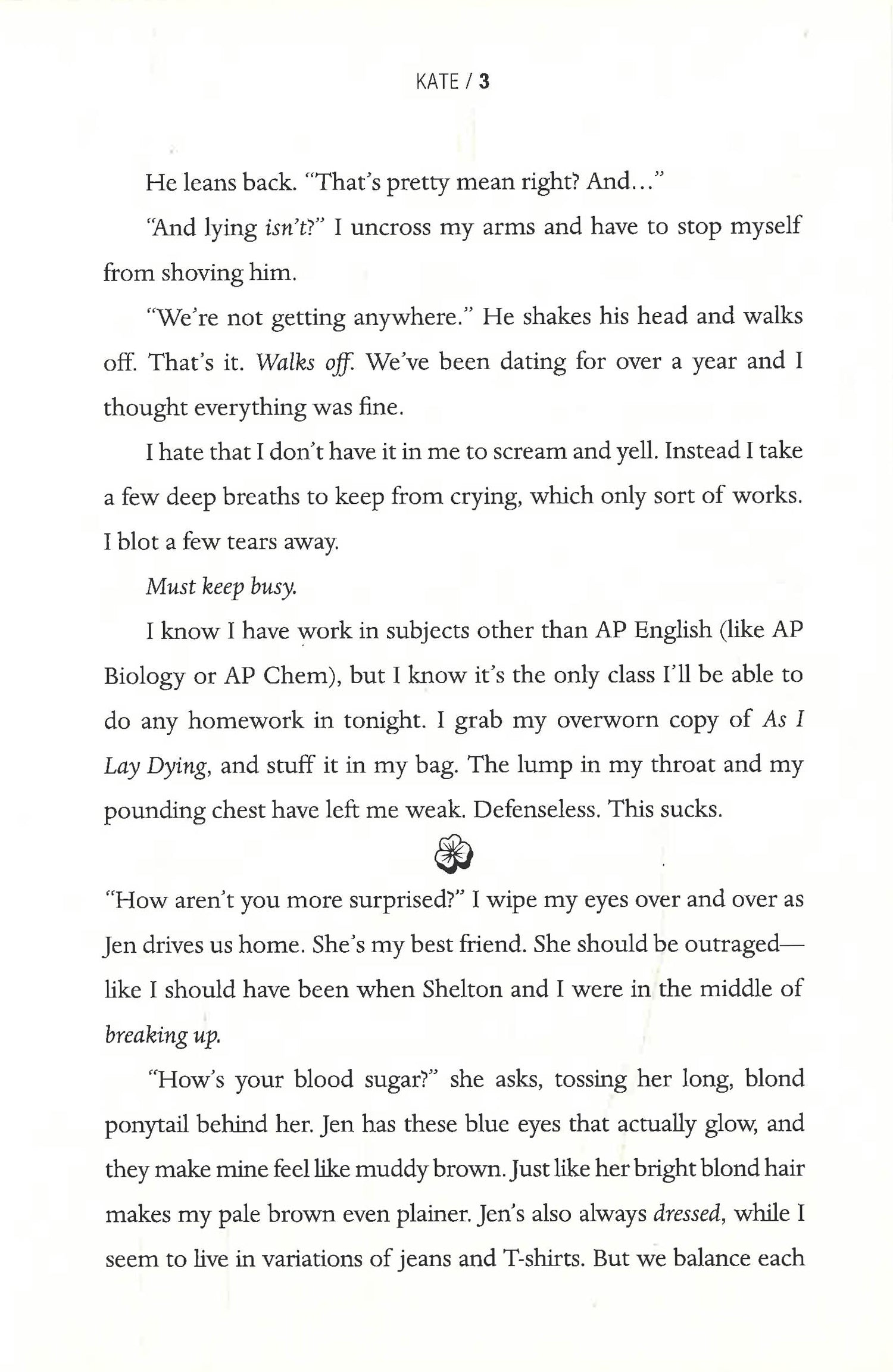 Kate's dream boyfriend has just broken up with her and she's still reeling from her diagnosis of type 1 diabetes.