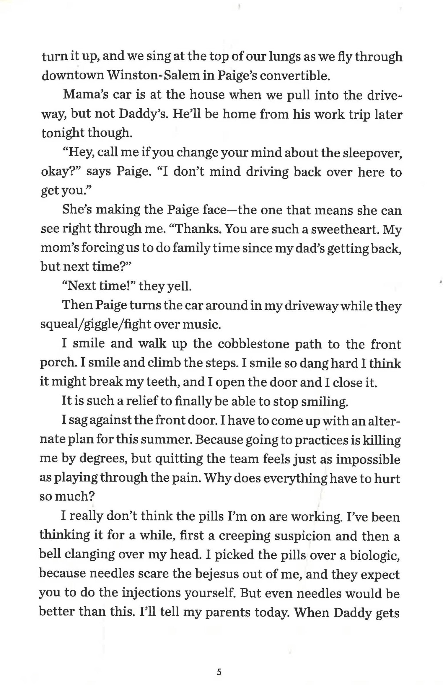 Four girls. One summer. And a pact to do the impossible. Skyler, Ellie, Scarlett, and Amelia Grace are forced to spend the summer at the lake house where their moms became best friends. One can't wait. One would rather gnaw off her own arm than hang out with a bunch of strangers just so their moms can drink too much wine and sing Journey at two o'clock in the morning. Two are sisters. Three are currently feuding with their mothers. One is hiding how bad her joint pain has gotten. All of them are hiding something. One falls in love with a boy she thought she despised. One almost sets her crush on fire with a flaming marshmallow. One has a crush that could change everything. None of them are the same at the end of the summer.