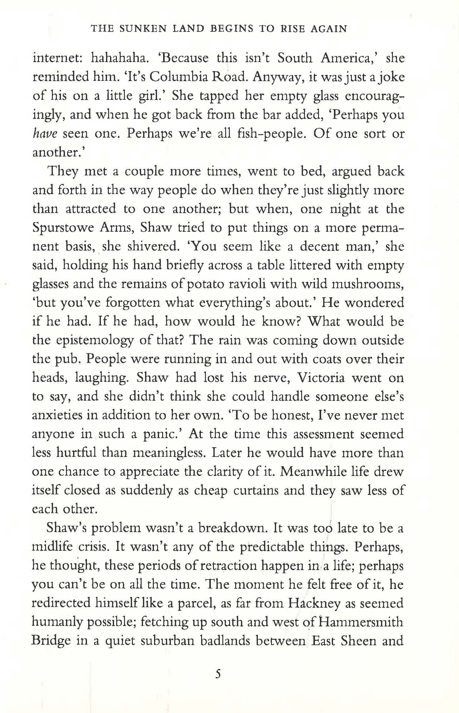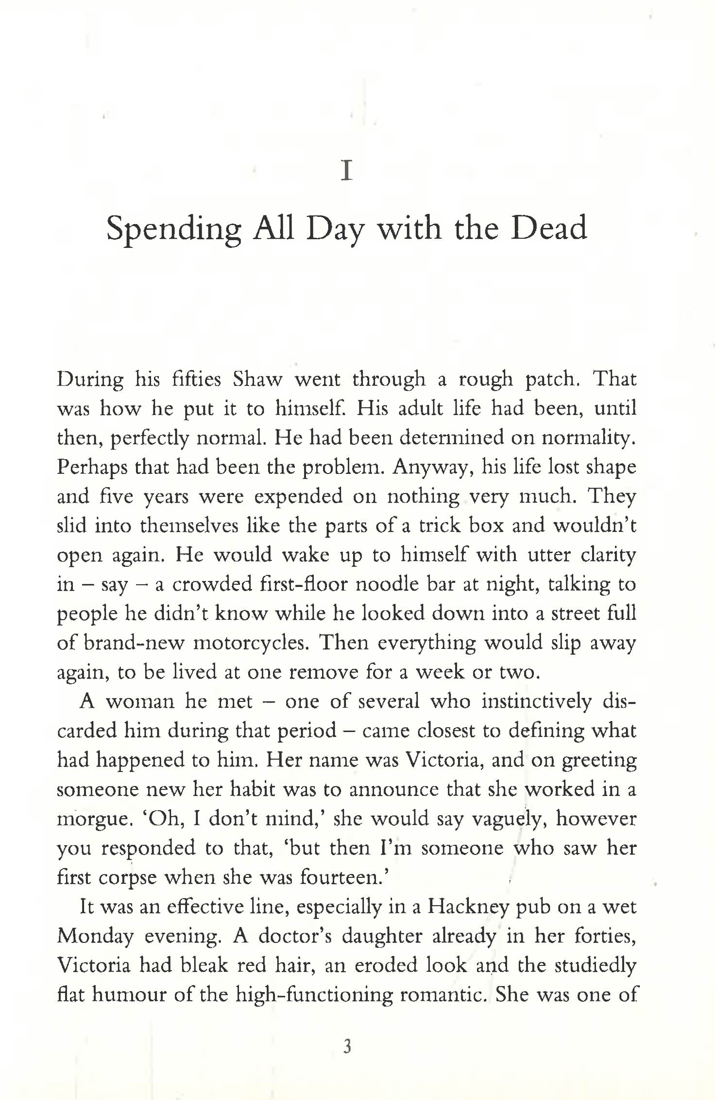 Shaw had a breakdown, but he's getting himself back together. He has a single room, a job on a decaying London barge, and an on-off affair with a doctor's daughter called Victoria, who claims to have seen her first corpse at age thirteen.