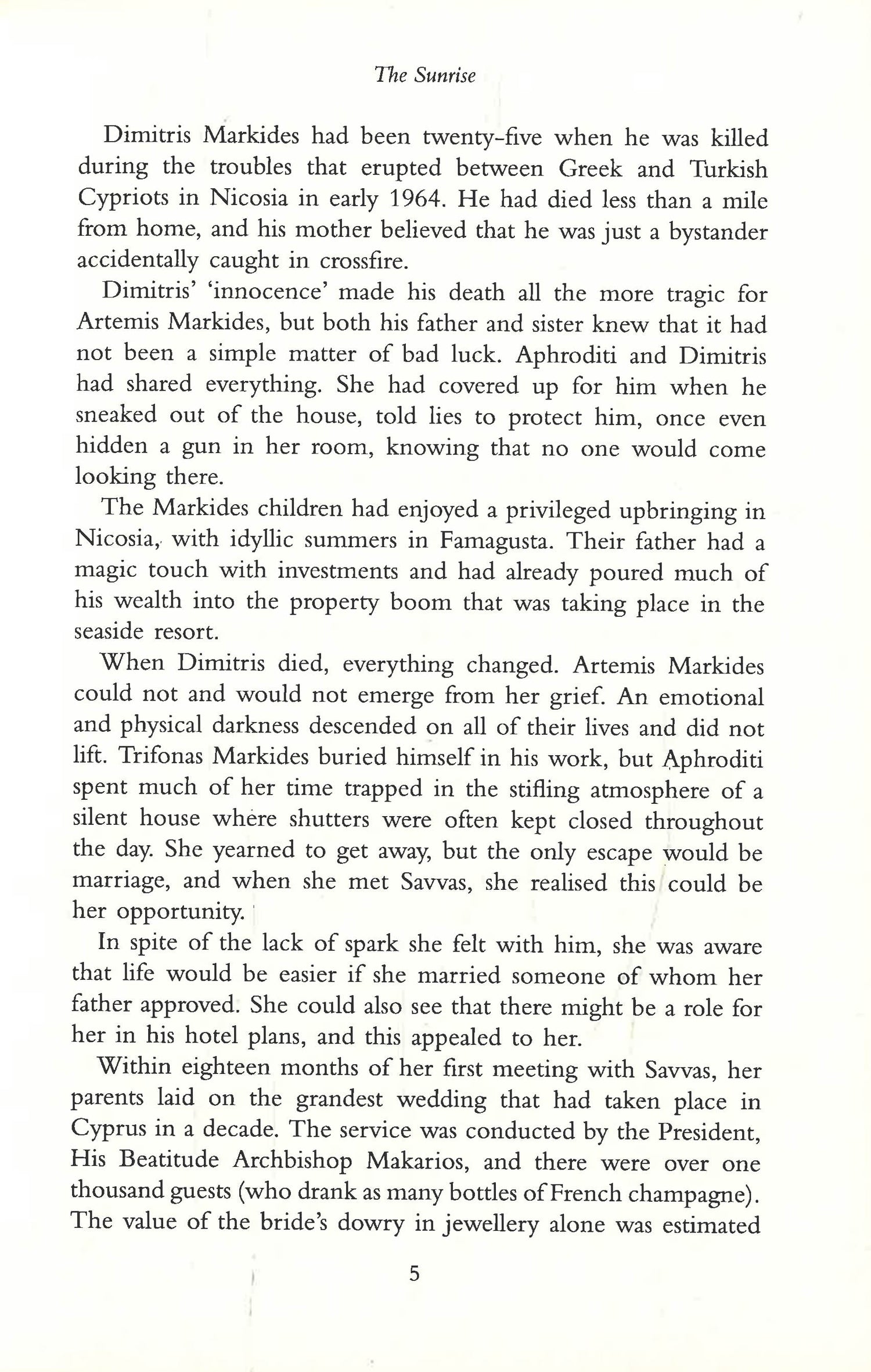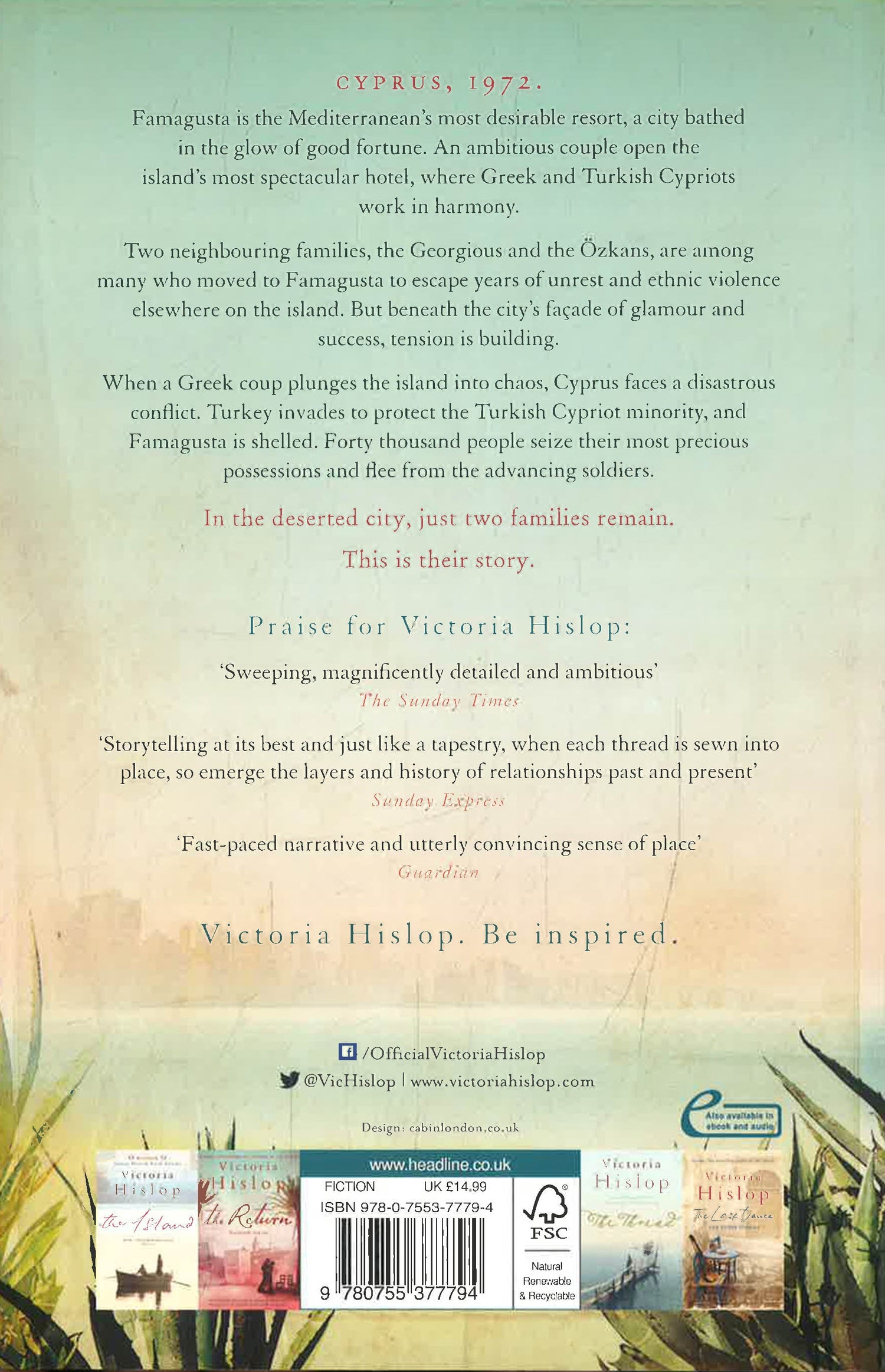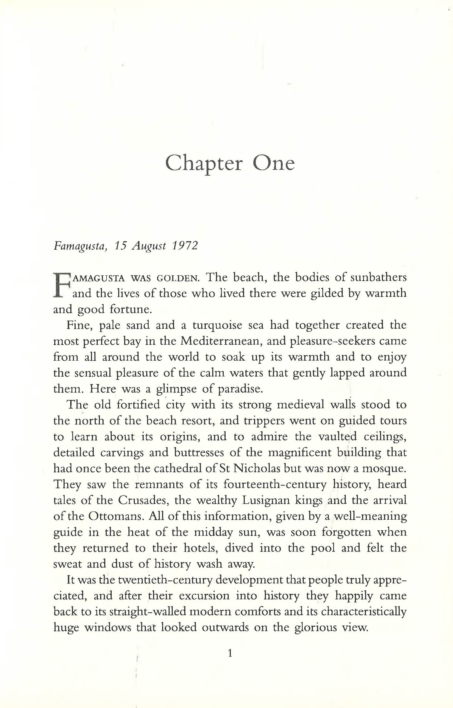 In the summer of 1972, Famagusta in Cyprus is the most desirable resort in the Mediterranean, a city bathed in the glow of good fortune. An ambitious couple are about to open the island's most spectacular hotel, where Greek and Turkish Cypriots work in harmony. Two neighbouring families, the Georgious and the Ozkans, are among many who moved to Famagusta to escape the years of unrest and ethnic violence elsewhere on the island. But beneath the city's facade of glamour and success, tension is building. When a Greek coup plunges the island into chaos, Cyprus faces a disastrous conflict. Turkey invades to protect the Turkish Cypriot minority, and Famagusta is shelled. Forty thousand people seize their most precious possessions and flee from the advancing soldiers. In the deserted city, just two families remain. This is their story.
