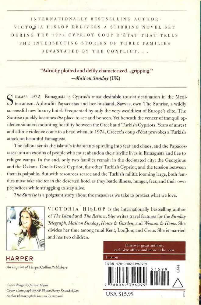 Summer 1972--Famagusta is Cyprus's most glamorous city and the most desirable tourist destination in the Mediterranean, and the Papacostas are right at the center of it. Aphroditi and her husband Savvas own The Sunrise, a wildly successful new luxury hotel. Frequented by only the very wealthiest of Europe's elite, The Sunrise--especially its alluring nightclub--quickly becomes the place to see and be seen. Yet beneath the veneer of tranquil opulence simmers mounting hostility between the Greeks and the Turks. Years of unrest and ethnic violence come to a head when, in 1974, Greece's coup d'état provokes a Turkish attack on beautiful Famagusta.