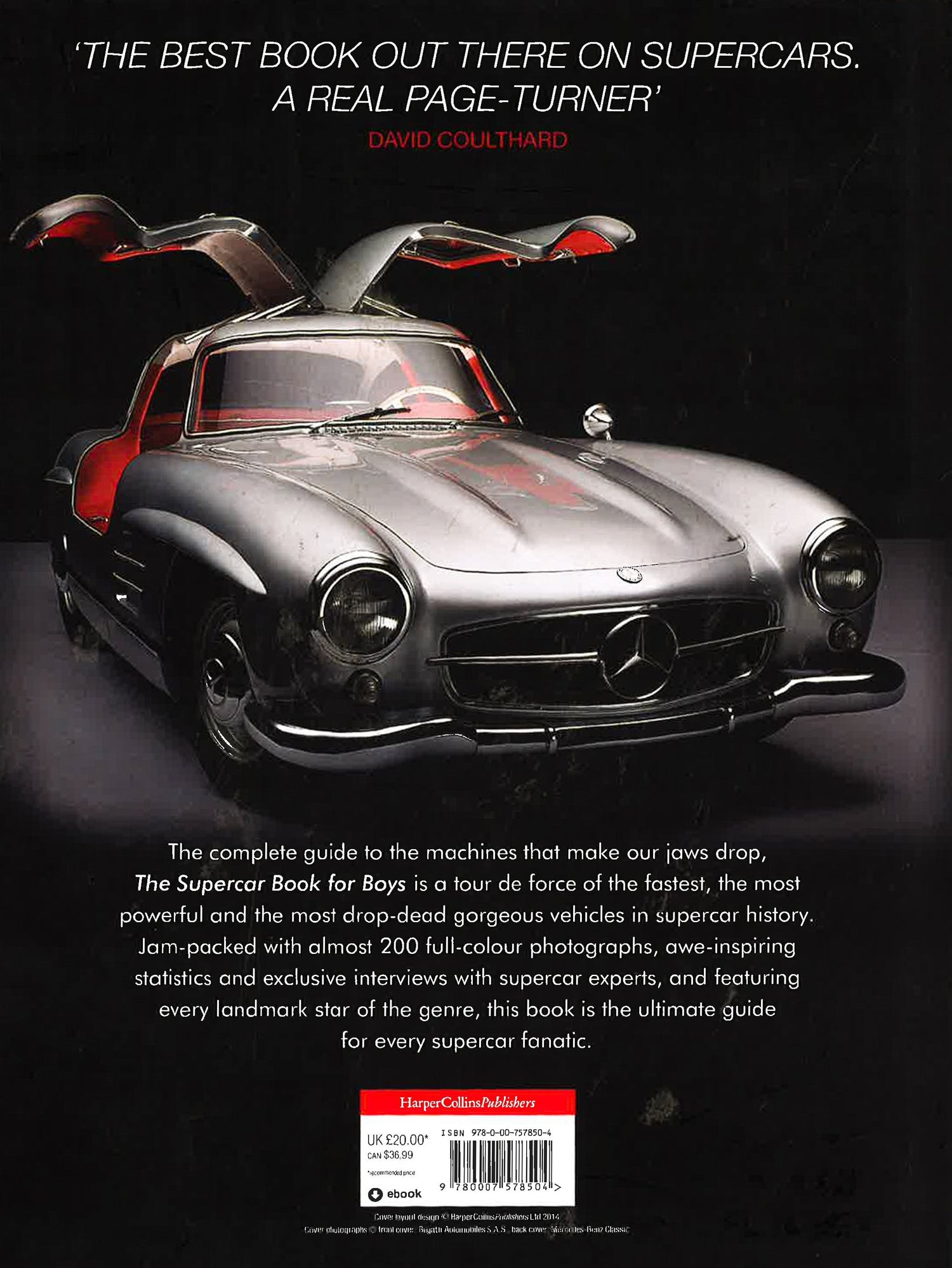 The Supercar Book for Boys is a must-have for all boys and their dads (and gearhead girls and motorfan mums!) interested in fast cars.With an introductory chapter from F1 racing champ David Coulthard, as well as contributions from the biggest names in the field, this tour de force starts with the iconic 1954 Mercedes Gullwing and races through each respective decade of supercar history, showcasing the very best and most important vehicles in this scintillating species. Featuring the landmark 10 game-changers that have defined the genre and highlighting dozens and dozens of landmark supercars from the likes of Ferrari, Lamborghini, Bugatti, Pagani, McLaren, and Porsche, get ready to be blown away by the beauty and power of these powerhouse vehicles.Alongside the history and changing aesthetics of the supercar , this title delves into the mechanics of the vehicles - taking us underneath the bonnet and peeling back the bodywork of these mind-blowing machines, as well as exploring how supercar technology has affected everyday cars. Fully illustrated throughout, The Supercar Book for Boys is a sumptuously designed guide full of everything you could ever want to know about the best supercars on the planet.