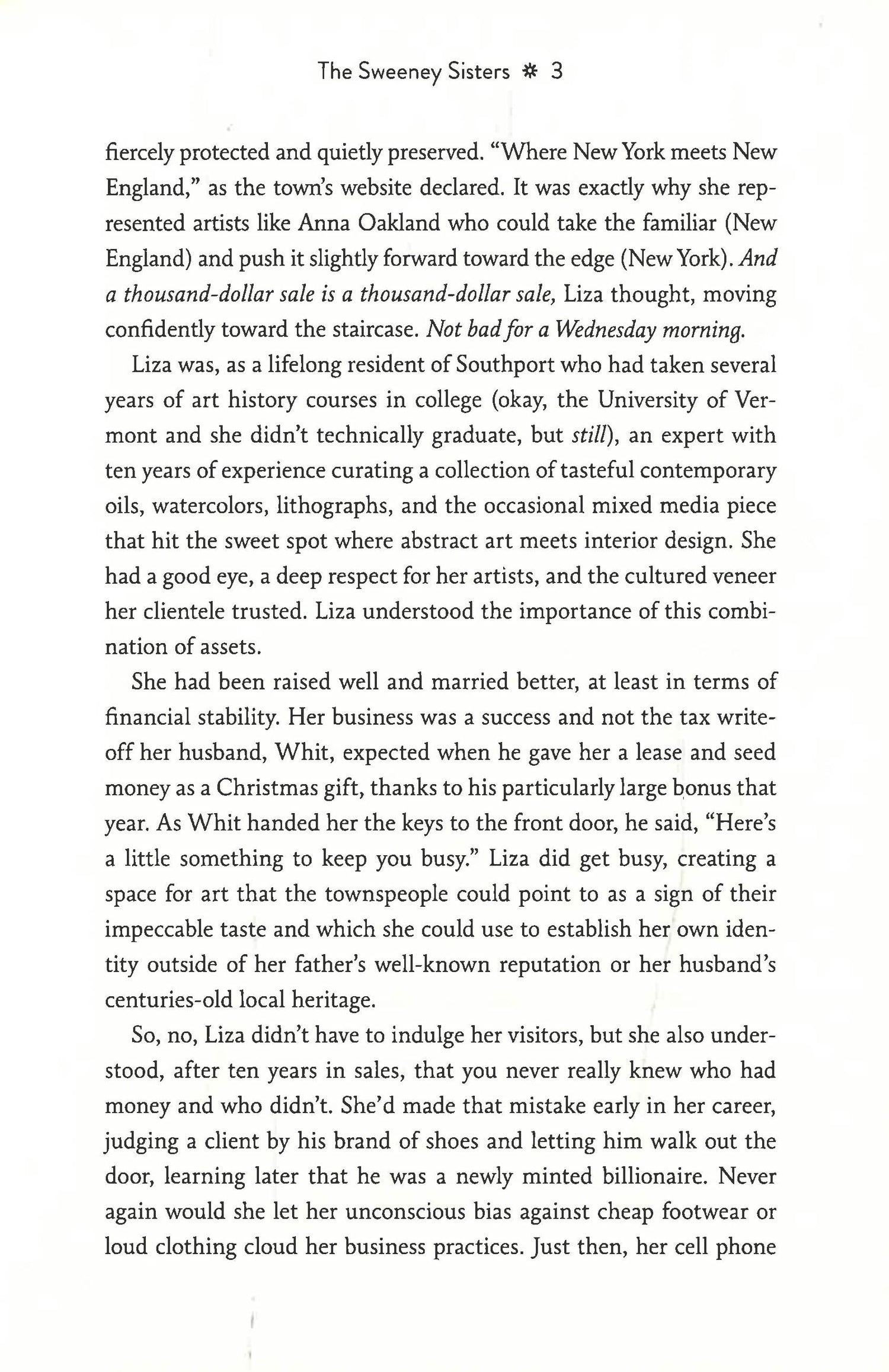 An accomplished storyteller returns with her biggest, boldest, most entertaining novel yet-a hilarious, heartfelt story about books, love, sisterhood, and the surprises we discover in our DNA that combines the wit of Jonathan Tropper with the heart of Susan Wiggs.Maggie, Eliza, and Tricia Sweeney grew up as a happy threesome in the idyllic seaside town of Southport, Connecticut. But their mother's death from cancer fifteen years ago tarnished their golden-hued memories, and the sisters drifted apart. Their one touchstone is their father, Bill Sweeney, an internationally famous literary lion and college professor universally adored by critics, publishers, and book lovers. When Bill dies unexpectedly one cool June night, his shell-shocked daughters return to their childhood home. They aren't quite sure what the future holds without their larger-than-life father, but they do know how to throw an Irish wake to honor a man of his stature.But as guests pay their respects and reminisce, one stranger, emboldened by whiskey, has crashed the party. It turns out that she too is a Sweeney sister. When Washington, DC based journalist Serena Tucker had her DNA tested on a whim a few weeks earlier, she learned she had a 50% genetic match with a childhood neighbor-Maggie Sweeney of Southport, Connecticut. It seems Serena's chilly WASP mother, Birdie, had a history with Bill Sweeney-one that has remained totally secret until now.Once the shock wears off, questions abound. What does this mean for William's literary legacy? Where is the unfinished memoir he's stashed away, and what will it reveal? And how will a fourth Sweeney sister-a blond among redheads-fit into their story?By turns revealing, insightful, and uproarious, The Sweeney Sisters is equal parts cautionary tale and celebration-a festive and heartfelt look at what truly makes a family.