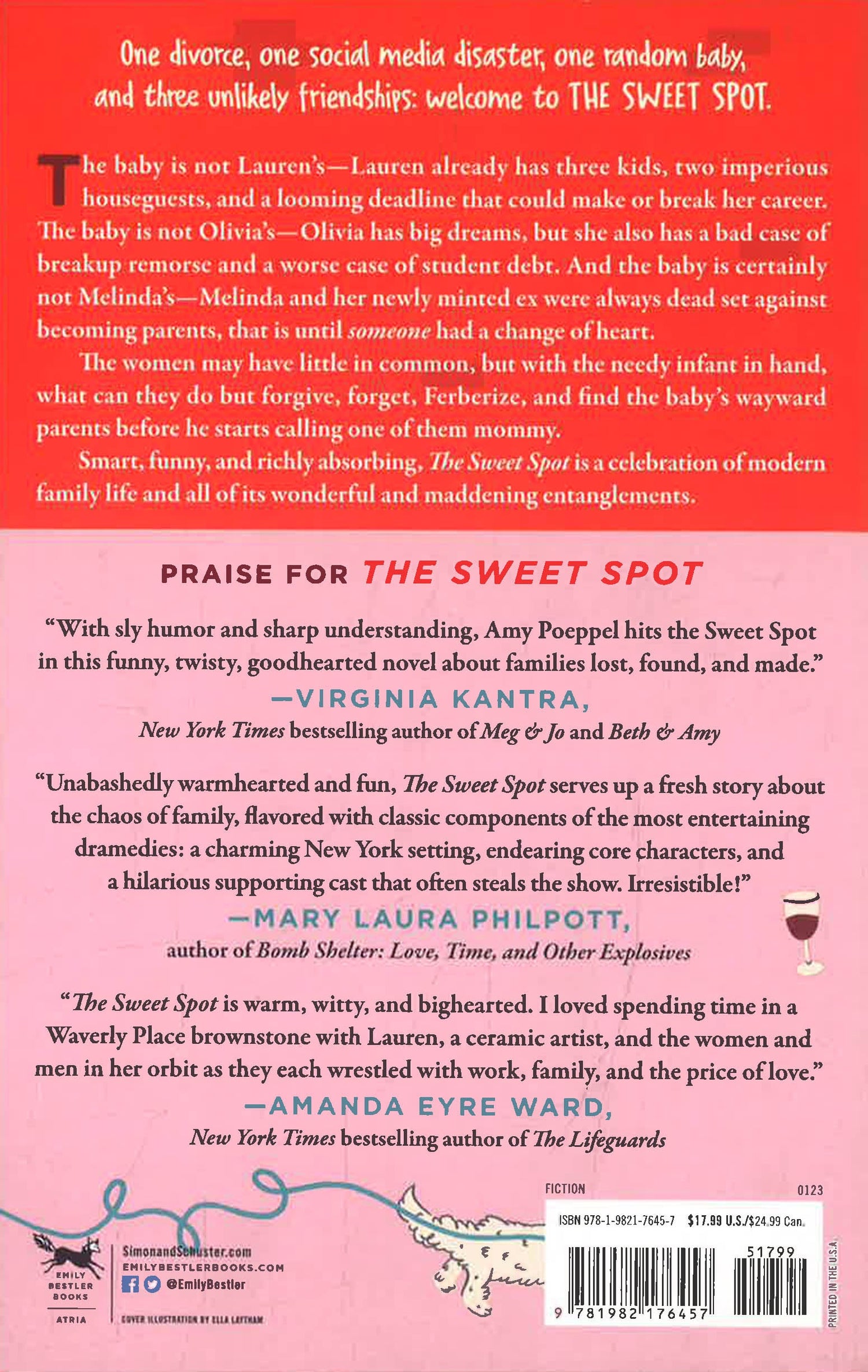 When Melinda’s ex follows his lover across the country, leaving their squalling baby behind, the three women rise to the occasion in order to forgive, to forget, to Ferberize, and to track down the wayward parents. But can their little village find a way toward the happily ever afters they all desire? Welcome to The Sweet Spot.