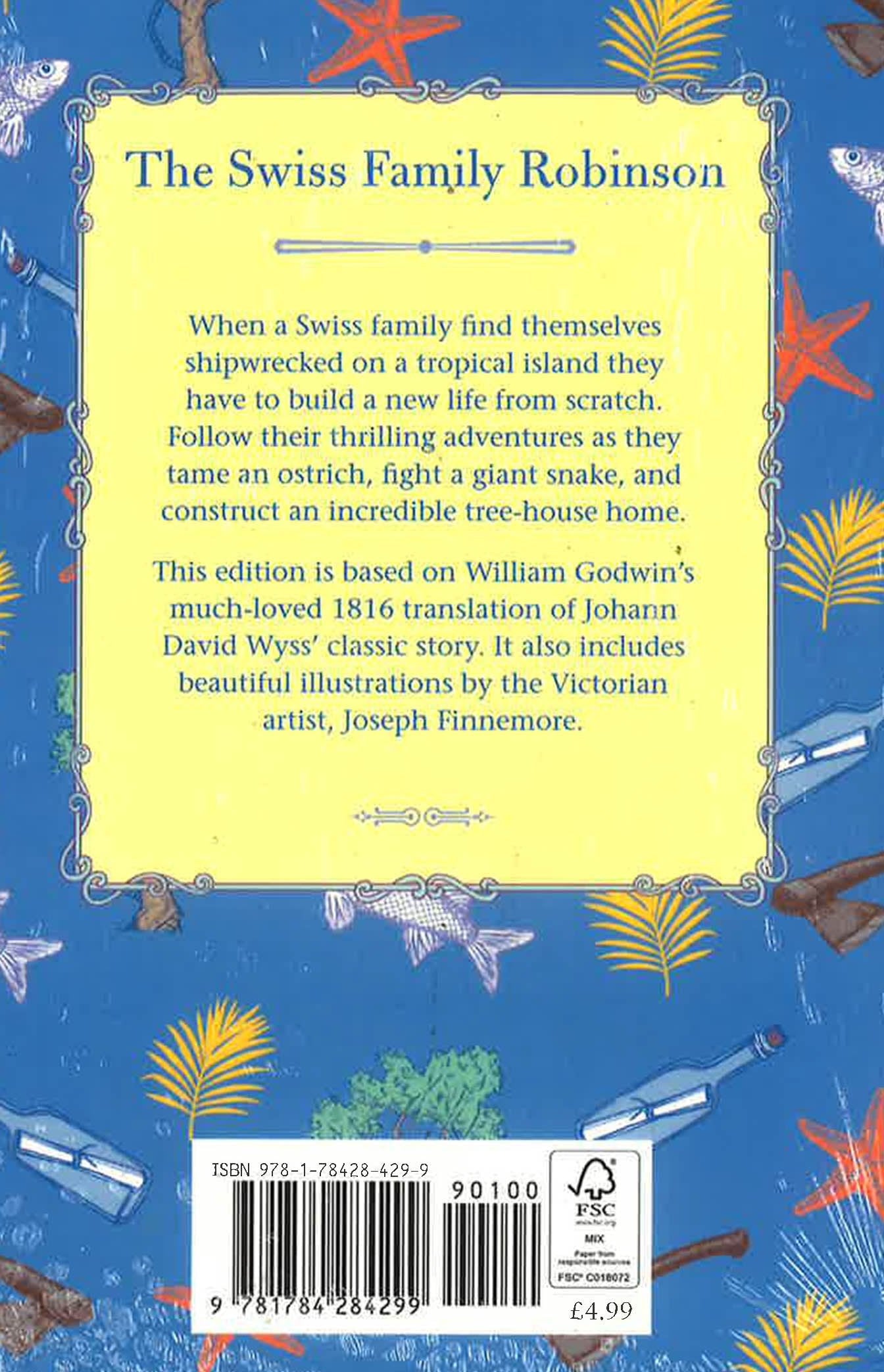 Shipwrecked passengers on a deserted island: how will they survive? After their ship founders at sea, the Robinsons father, mother, and four sons find themselves stranded in an uninhabited, idyllic land. Young readers will enjoy watching them handle every crisis with cleverness and skill.