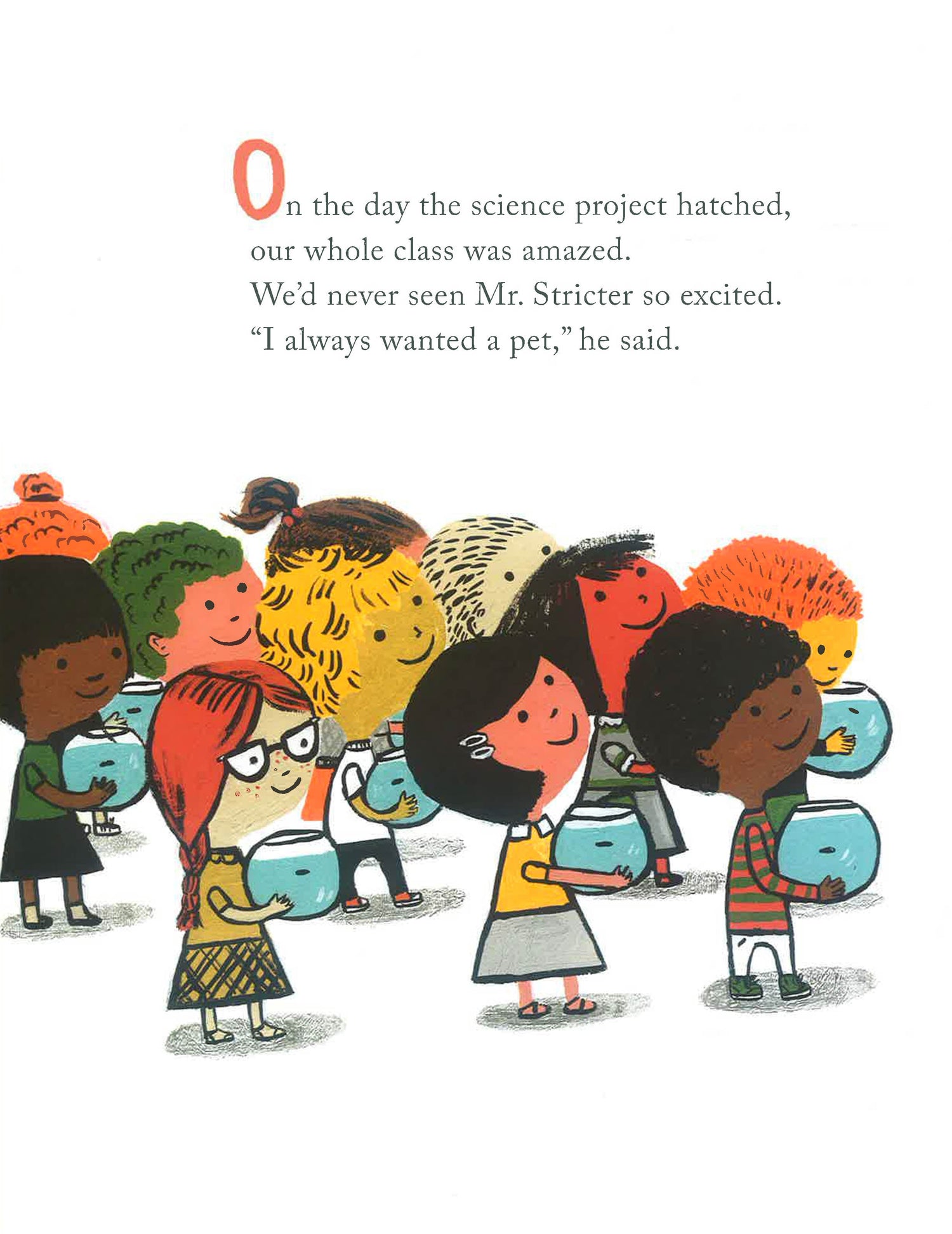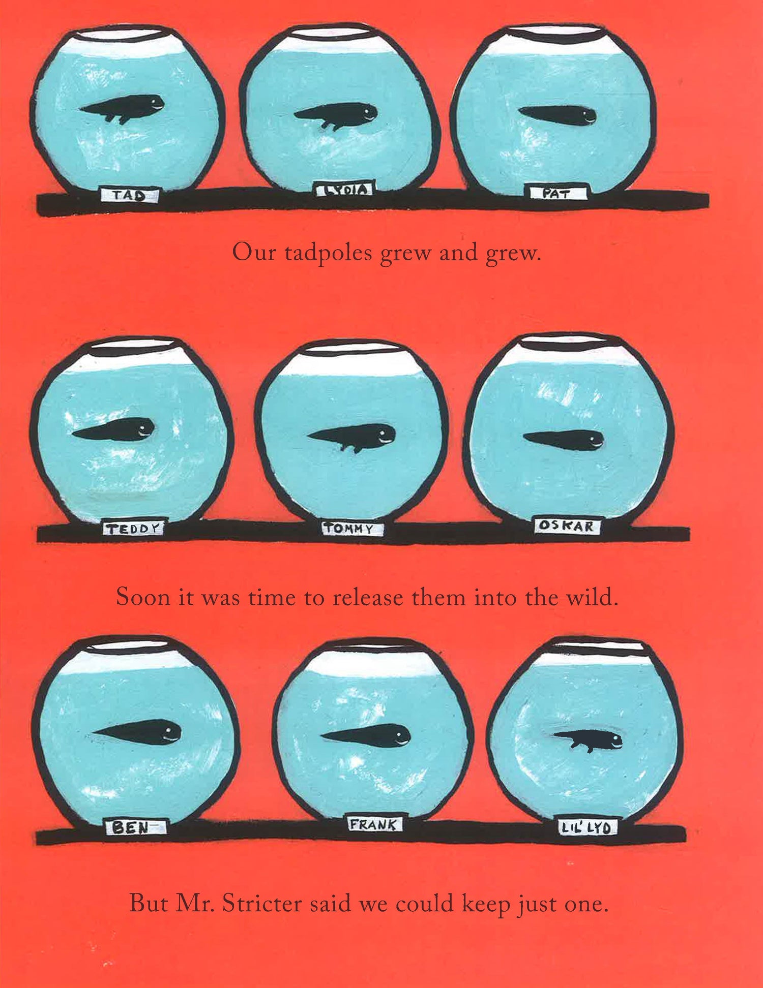 When their class tadpoles are big enough, Mr. Stricter tells his students they can keep just one. The class chooses Bruno, the smallest of the bunch. But Bruno doesn't stay that way for long. Soon, he's grown into a giant, classroom-wrecking creature: he eats desks, he farts for show-and-tell, and he sneezes slime all over everything! With Mr. Stricter blinded by love for the pet, the students must step up and take matters into their own heroic hands.