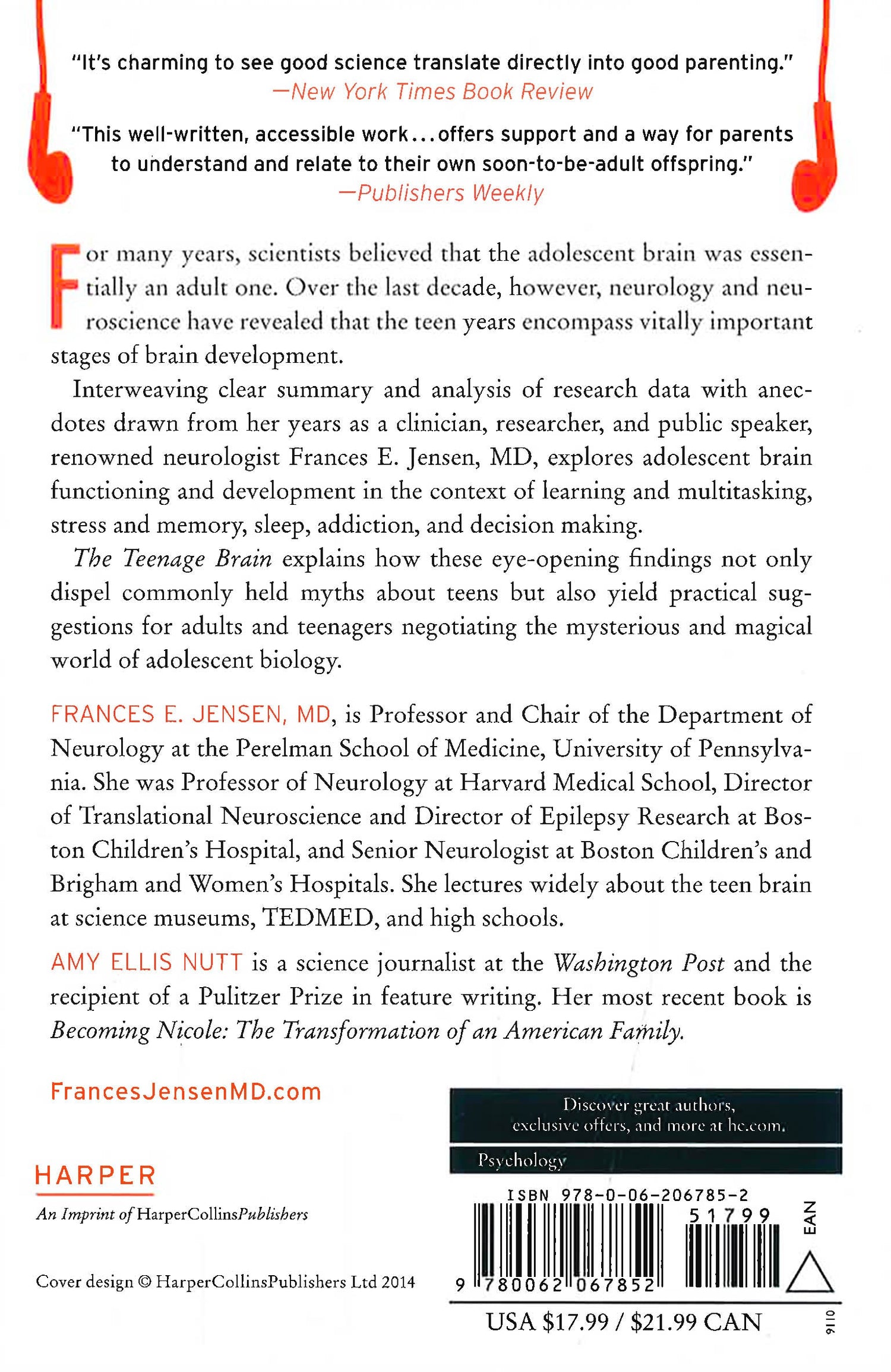 Motivated by her personal experience of parenting two teenage boys, renowned neurologist Dr. Frances E. Jensen gathers what we've discovered about adolescent brain functioning, wiring, and capacity and, in this groundbreaking, accessible book, explains how these eye-opening findings not only dispel commonly held myths about the teenage years, but also yield practical suggestions that will help adults and teenagers negotiate the mysterious world of adolescent neurobiology.