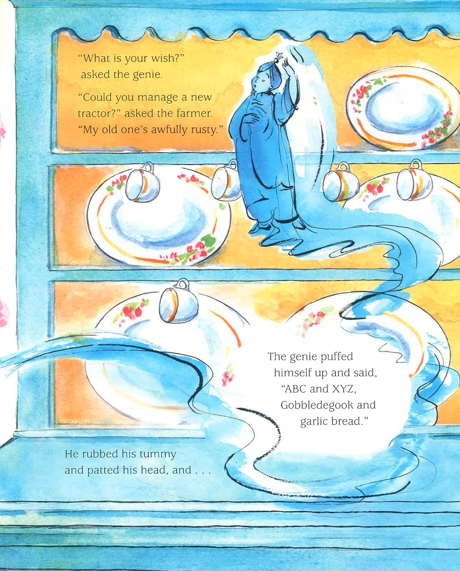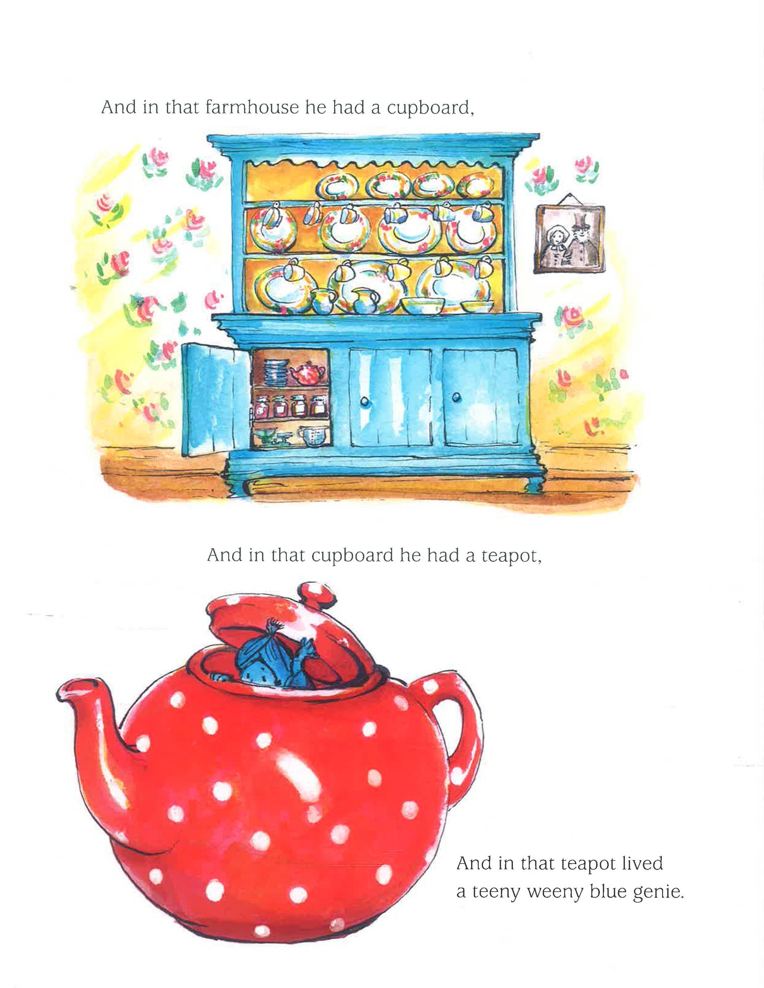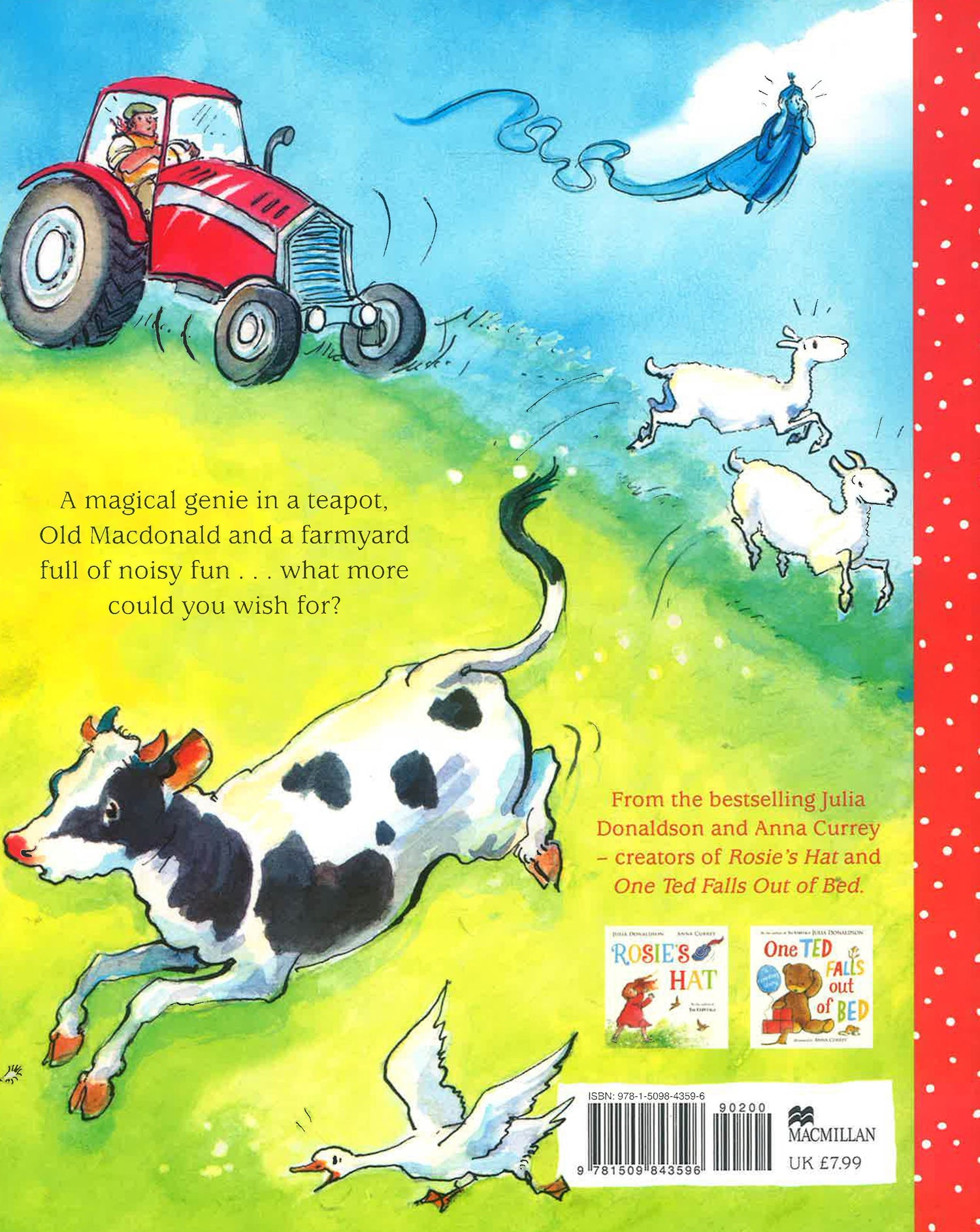 Old Macdonald is cleaning out his farmhouse kitchen when he comes across a dusty old teapot. And no one could be more surprised when a wish-granting genie pops out of the spout. Old Macdonald wishes for a wife, who wishes for a baby. A baby who wishes for a dog, who wishes for a cat, who wishes for some mice! It doesn't take long before the farmyard starts getting very busy, and VERY noisy! Will the genie ever get a break from granting wishes, and find some peace? If only there was someone who could grant him a wish . . .