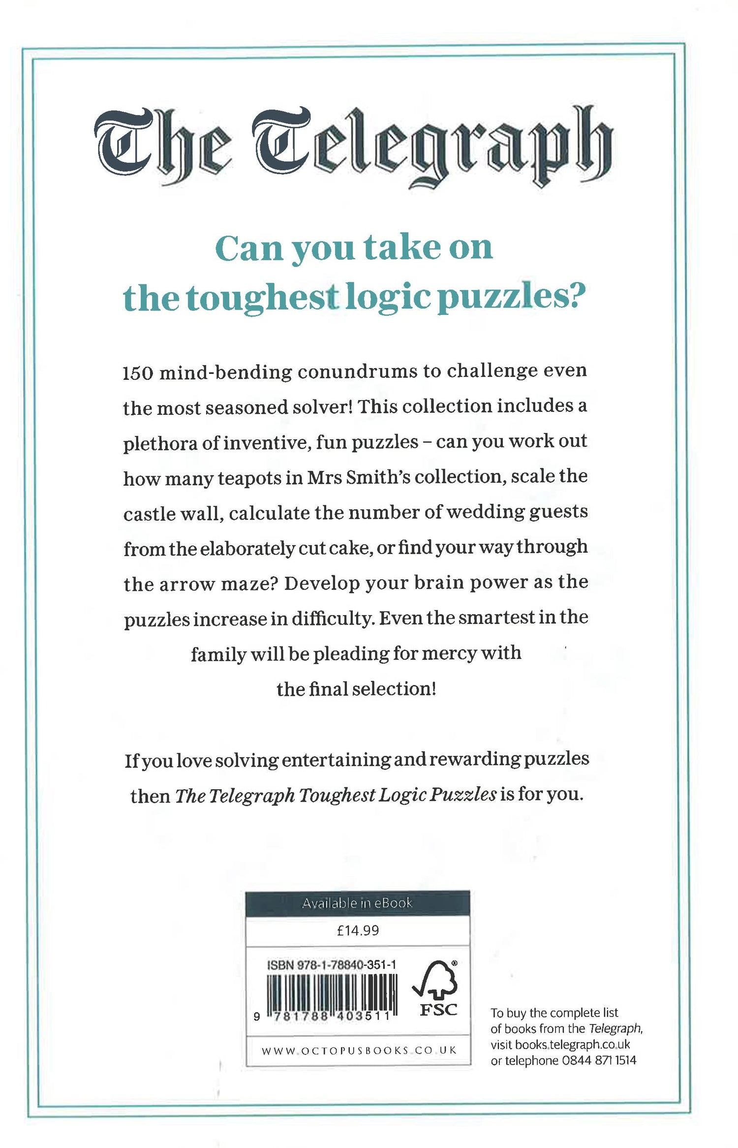 150 mind-bending conundrums to challenge even the most seasoned solver! Take on a vast variety of fun tasks from solving burglaries and cracking safes, to finding hidden treasure and sketching crime suspects. Develop your brain power as the puzzles increase in difficulty. Even the smartest in the family will be pleading for mercy with the final selection! If you love solving entertaining and rewarding puzzles then The Telegraph Toughest Logic Puzzles is for you.