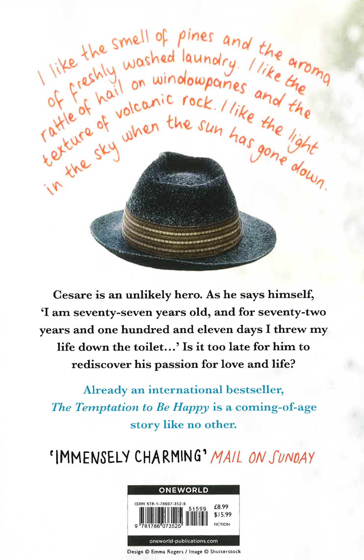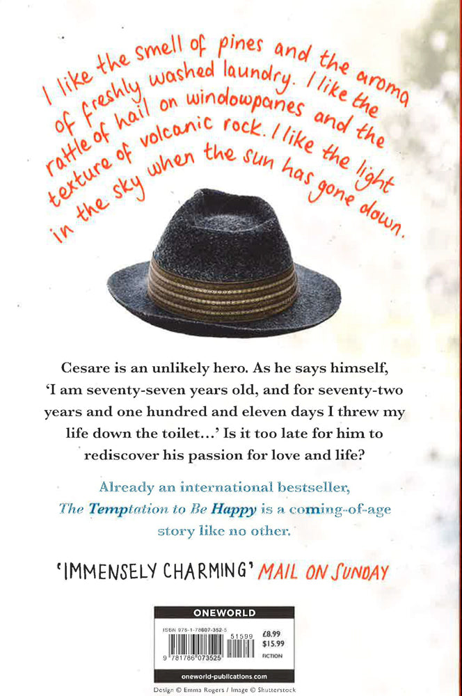 A darkly comic tale of a septuagenarian rediscovering love and life in Naples 'Sad, funny, wise and unblinkingly honest, this is truly wonderful.' Daily Mail 'I like the smell of pines and the aroma of freshly washed laundry. I like the rattle of hail on windowpanes and the texture of volcanic rock. I like the light in the sky when the sun has gone down.' Cesare is an unlikely hero. As he says himself, 'I am seventy-seven years old, and for seventy-two years and one hundred and eleven days I threw my life down the toilet...' Is it too late for him to rediscover his passion for love and life? Already an international bestseller, The Temptation to Be Happy is a coming-of-age story like no other. 'Immensely charming... Uplifting and very much on the side of life.' Mail on Sunday
