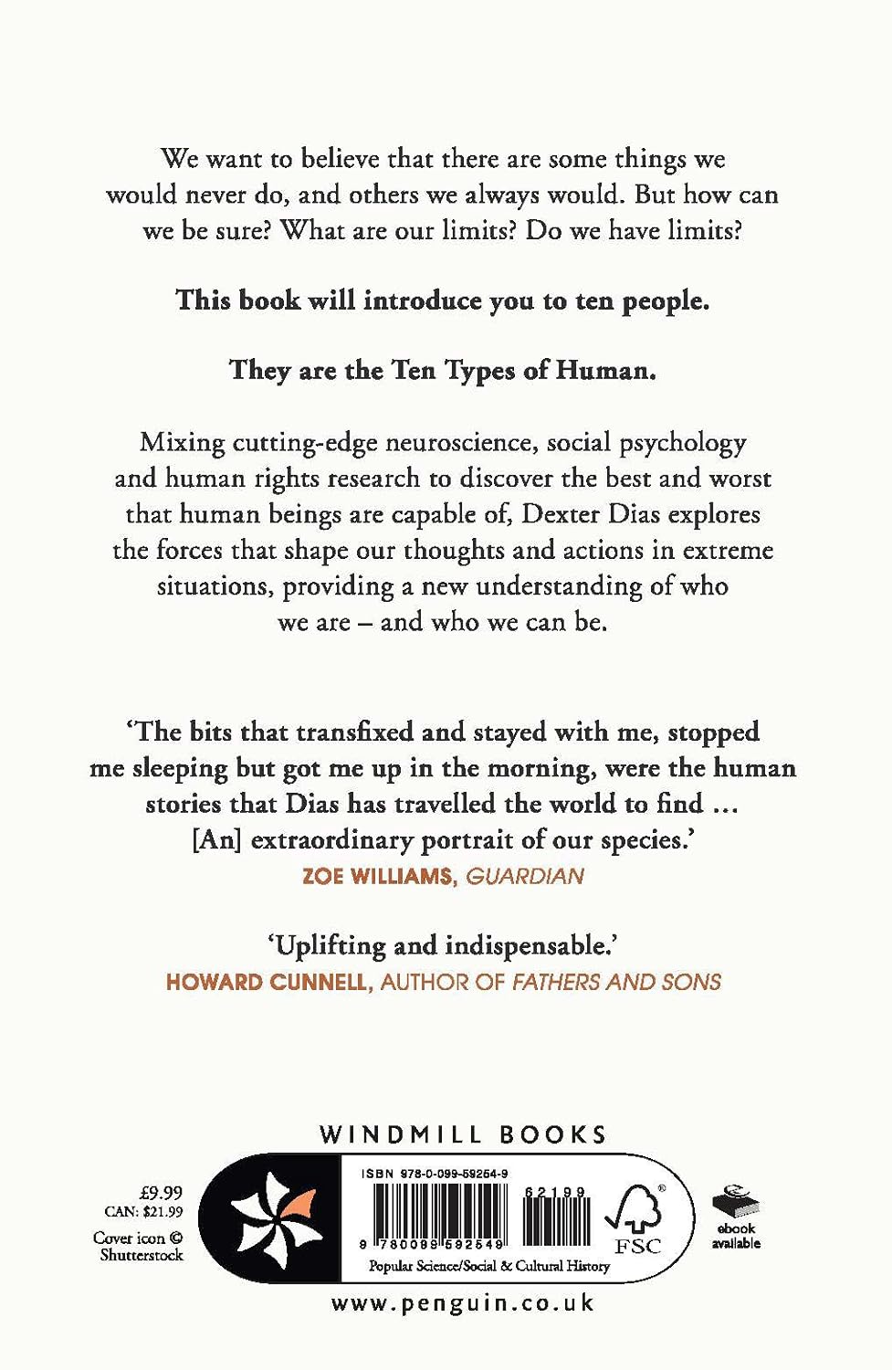 THE INSPIRATION BEHIND THE NEW PODCAST THE 100 TYPES OF HUMAN WITH DEXTER DIAS AND BBC 5 LIVE HOST NIHAL ARTHANAYAKE'This book is the one. Think Sapiens and triple it.' - Julia Hobsbawm, author of Fully Connected_______________________________We all have ten types of human in our head.They're the people we become when we face life's most difficult decisions. We want to believe there are things we would always do - or things we never would. But how can we be sure? What are our limits? Do we have limits? The Ten Types of Human is a pioneering examination of human nature. It looks at the best and worst that human beings are capable of, and asks why. It explores the frontiers of the human experience, uncovering the forces that shape our thoughts and actions in extreme situations.From courtrooms to civil wars, from Columbus to child soldiers, Dexter Dias takes us on a globe-spanning journey in search of answers, touching on the lives of some truly exceptional people.Combining cutting-edge neuroscience, social psychology and human rights research, The Ten Types of Human is a provocative map to our hidden selves. It provides a new understanding of who we are - and who we can be._______________________________'I emerged from this book feeling better about almost everything... a mosaic of faces building into this extraordinary portrait of our species.' - Guardian 'The Ten Types of Human is a fantastic piece of non-fiction, mixing astonishing real-life cases with the latest scientific research to provide a guide to who we really are. It's inspiring and essential.' - Charles Duhigg'Uplifting and indispensable.' - Howard Cunnell _______________________________What readers are saying about 'the most important book in years':'utterly compelling...this one comes with a warning - only pick it up if you can risk not putting it down' - Wendy Heydorn on Amazon, 5 stars'one of the most remarkable books I've read... I can genuinely say that it has changed the way I view the world' - David Jones on Amazon, 5 stars'Essential reading for anyone wishing to understand the human condition... a thrilling and beautifully crafted book' - Wasim on Amazon, 5 stars'This is the most important book I have read in years' - Natasha Geary on Amazon, 5 stars'an important and fascinating read... It will keep you glued to the page' - Hilary Burrage on Amazon, 5 stars'a journey that I will never forget, will always be grateful for, and I hope will help me question who I am... a work of genius' - Louise on Amazon, 5 stars'This is a magnificent book that will capture the interest of every type of reader... one of those rare and special books that demand rereading' - Amelia on Amazon, 5 stars 'I simply couldn't put it down... one of the most significant books of our time' - Jocelyne Quennell on Amazon, 5 stars'Read The Ten Types of Human and be prepared to fall in love' - Helen Fospero on Amazon, 5 stars