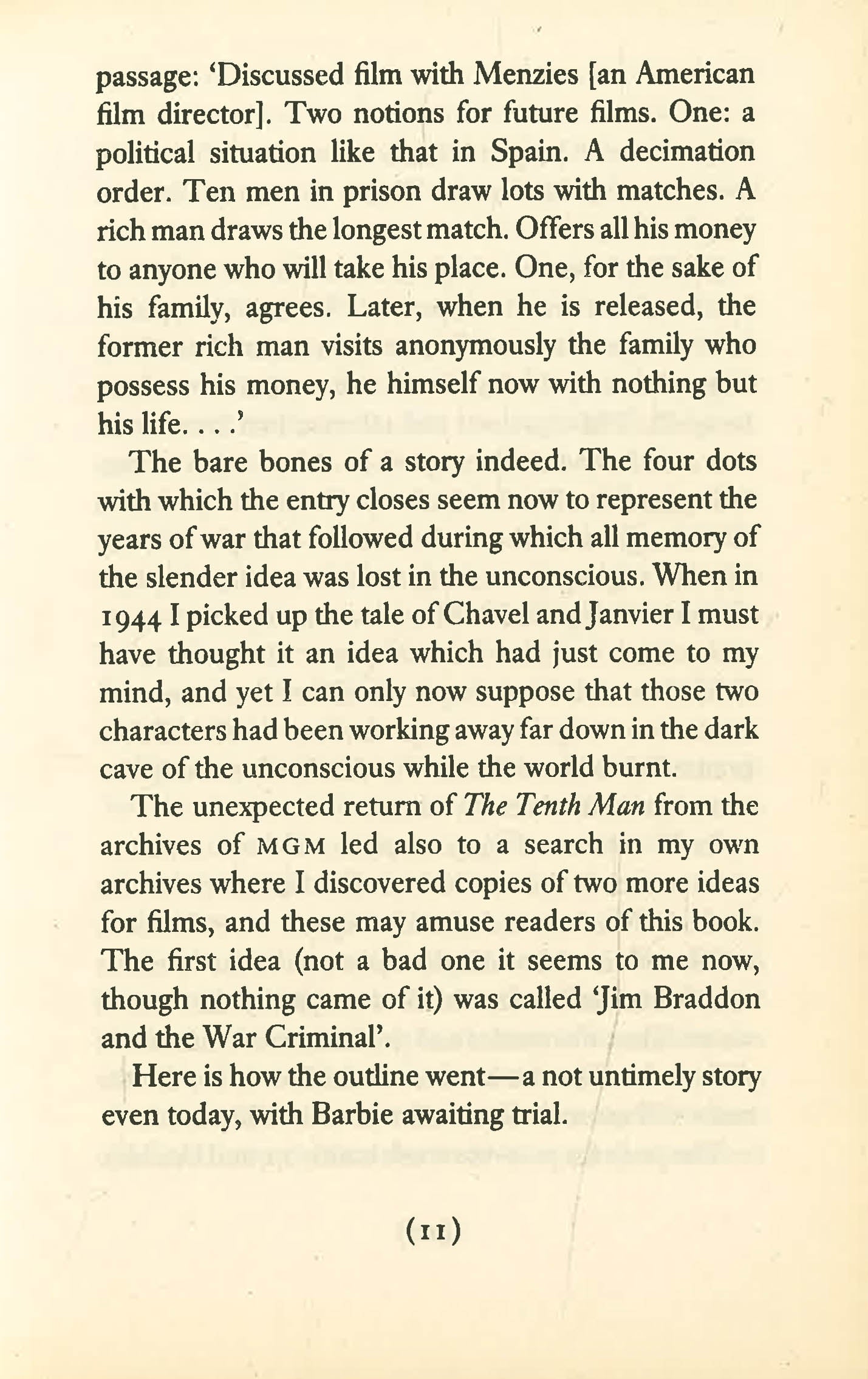 In a prison in Occupied France during the Second World War, the order is given that every tenth inmate is to be executed. Louis Chavel, a rich lawyer, draws the short straw and barters everything he owns to exchange places with another man and survive. Destitute but free, Chavel later returns to the house that he sold for his life, where he must face the consequences of his cowardice and seek redemption.