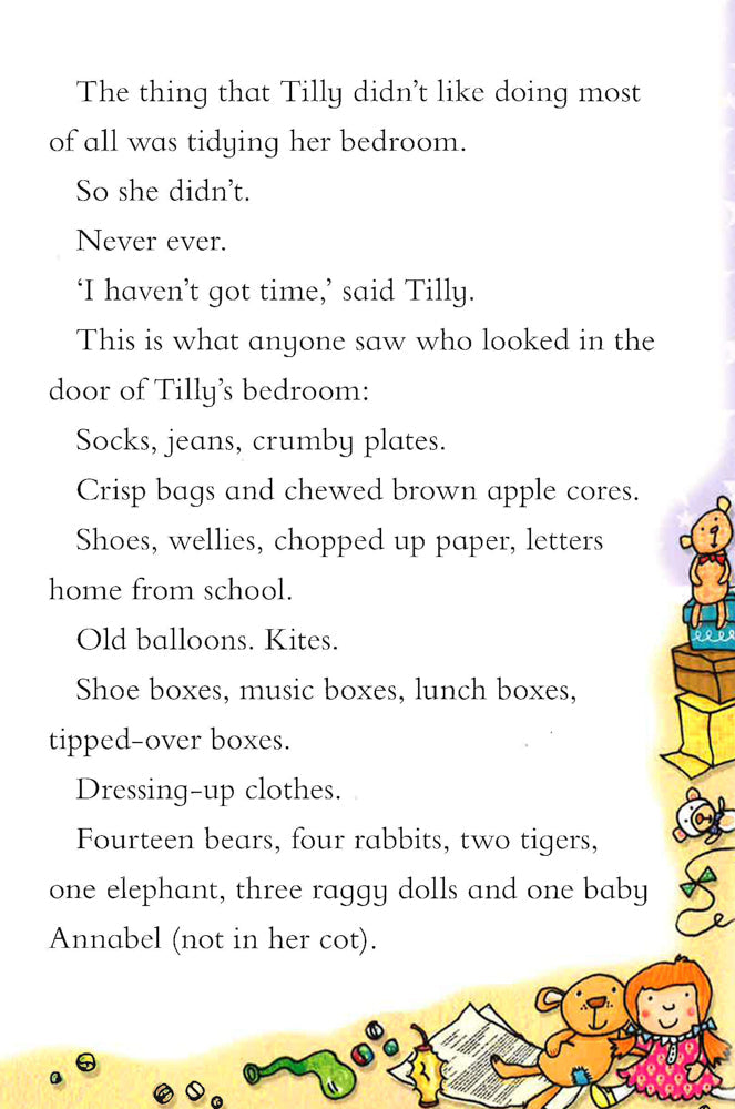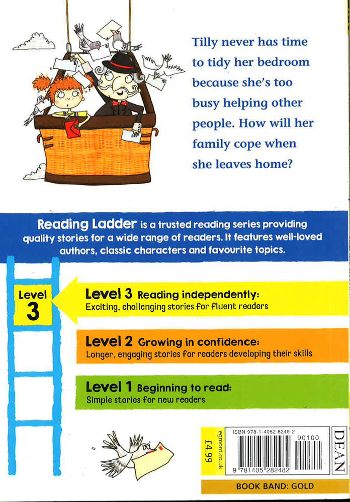 Tilly never has time to tidy her messy bedroom because she is always too busy helping other people. So when she leaves home to visit her far-flung relatives, how will her family cope without her?A funny and charming new story from bestseller Hilary McKay, perfect for children learning to read. Tilly never has time to tidy her messy bedroom because she is always too busy helping other people. So when she leaves home to visit her far-flung relatives, how will her family cope without her? The Reading Ladder series helps children to enjoy learning to read. It features well-loved authors, classic characters and favourite topics, so that children will find something to excite and engage them in every title they pick up. It's the first step towards a lasting love of reading. Level 3 Reading Ladder titles are perfect for fluent readers who are beginning to read exciting, challenging stories independently. * Varied sentences * Detailed illustrations to enjoy * Chapters * Interesting characters and themes * A rich range of vocabulary * More complex storylines to stretch confident readers All Reading Ladder titles are developed with a leading literacy consultant, making them perfect for use in schools and for parents keen to support their children's reading. Book band: Gold.