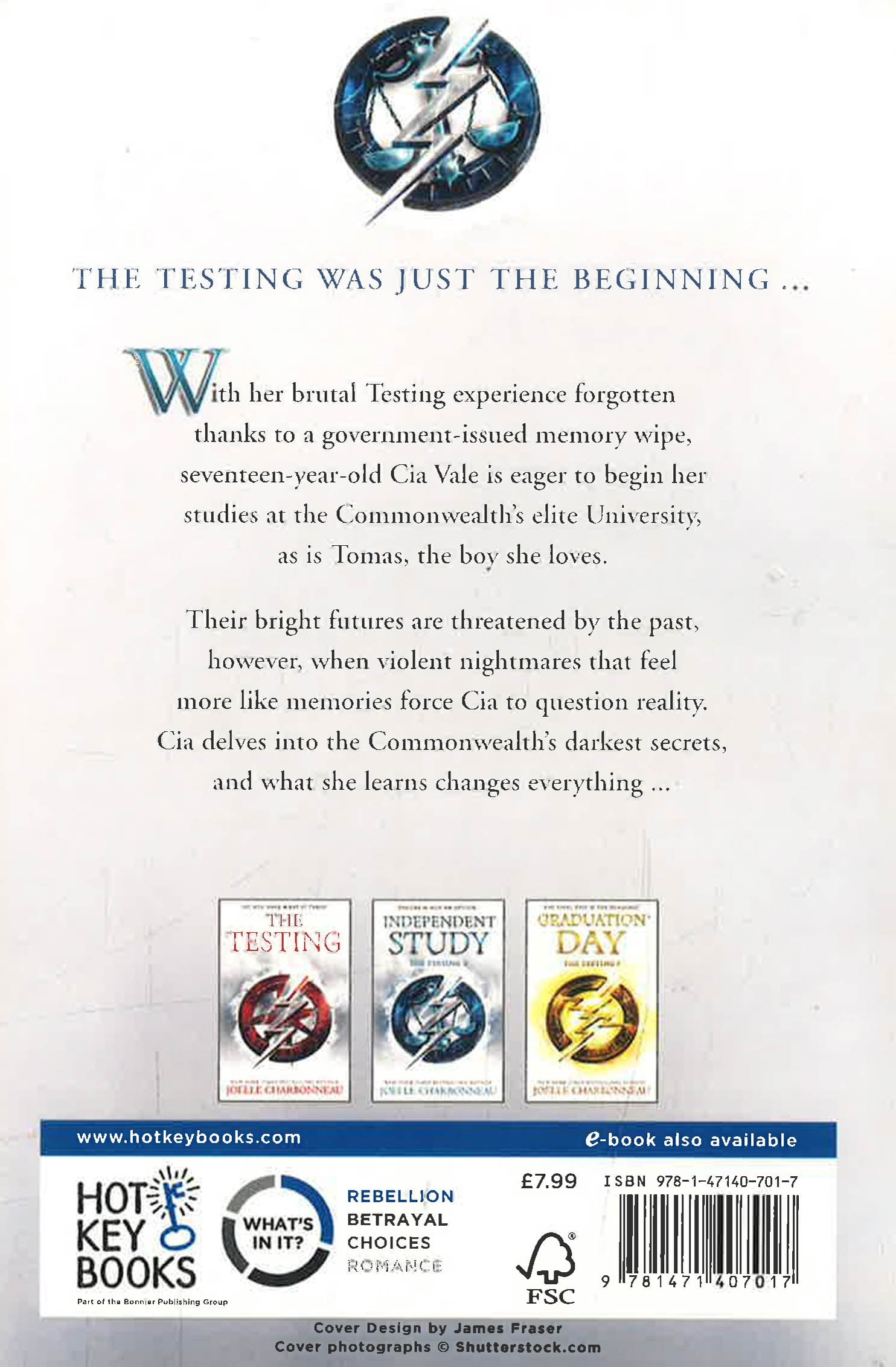 Cia Vale is now seventeen and has everything she ever dreamed of: a boy she loves, a place at the University and a future as one of the leaders of the United Commonwealth. Cia Vale is now seventeen and has everything she ever dreamed of: a boy she loves, a place at the University and a future as one of the leaders of the United Commonwealth. The Testing should be nothing more than a blank space in her mind; an achievement to be celebrated, and then forgotten. But Cia remembers. As further evidence of the government's murderous programmes comes to light, Cia must choose whether to stay silent and protect herself and her loved ones, or expose The Testing for what it is. Above all, the University is a dangerous place, and Cia must remember the advice her father gave her: TRUST NO ONE. Second instalment of this critically acclaimed futuristic trilogy.