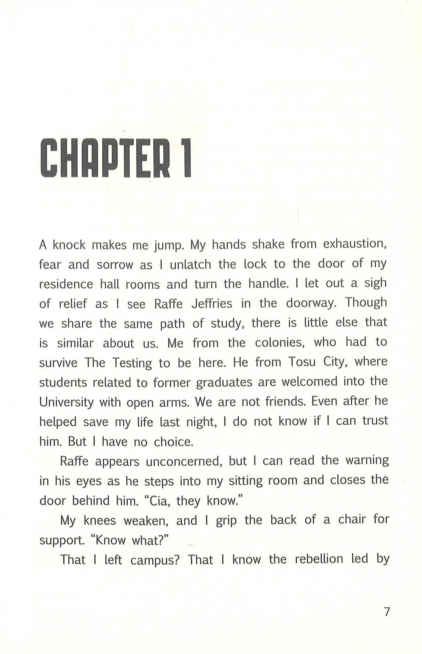 The United Commonwealth teeters on the brink of all-out civil war. Testing survivor Cia Vale knows that she alone can lead the rebellion against the government, but to do so she must risk the lives of those she loves, and gamble on the loyalty of her lethal classmates. In the electrifying conclusion to this bestselling trilogy, Cia must use all she's learned to fight for a future that's free from fear, and the stakes are higher than ever... Ready or not, it's Graduation Day.