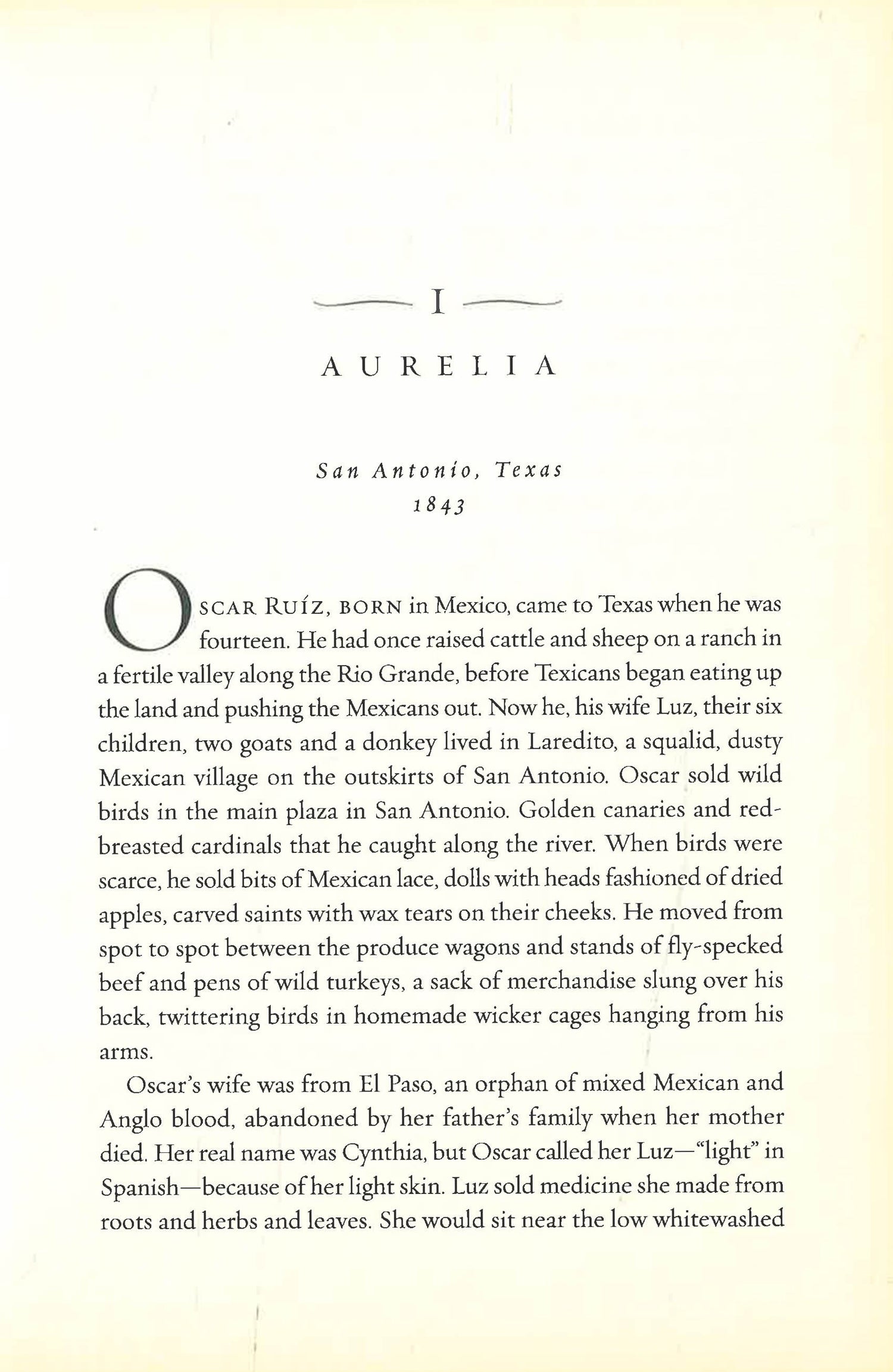 When cholera strikes San Antonio in 1843, Aurelia Ruiz discovers that she might have the power to healand also to curse. Meanwhile, Joseph Kimmel, a schoolteacher in Missouri and the son of a Polish Jew, learns of his brothers death in San Antonio and sets off for Texas. On his way, a runaway slave steals his horse. After being rescued by Henry Castro, a man who is importing immigrants to populate his planned city, Castroville, Joseph agrees to marry a young Alsatian girl to save her from a Comanche chief who has demanded her. Then Joseph encounters Aurelia and becomes enamored with her.