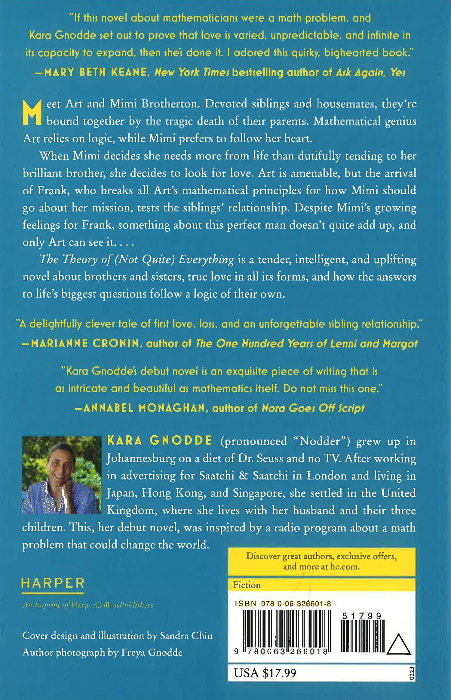 The Theory of (Not Quite) Everything is a tender, intelligent and uplifting novel about brothers and sisters, true love in all its forms, and how the answers to life's biggest questions follow a logic of their own.