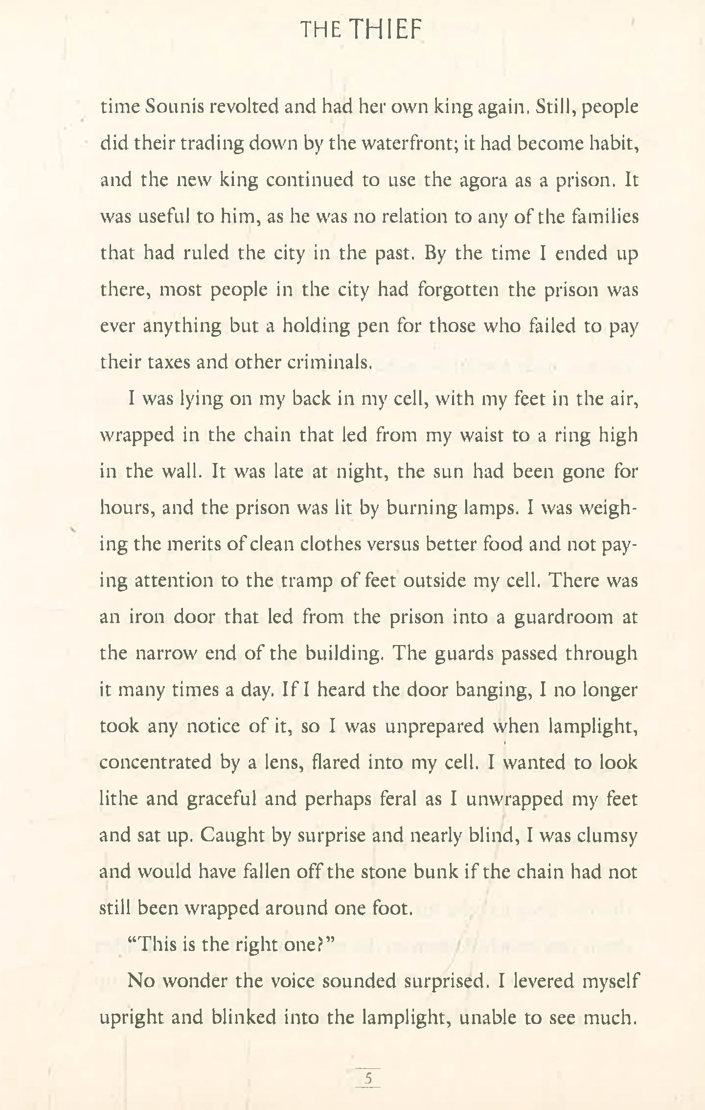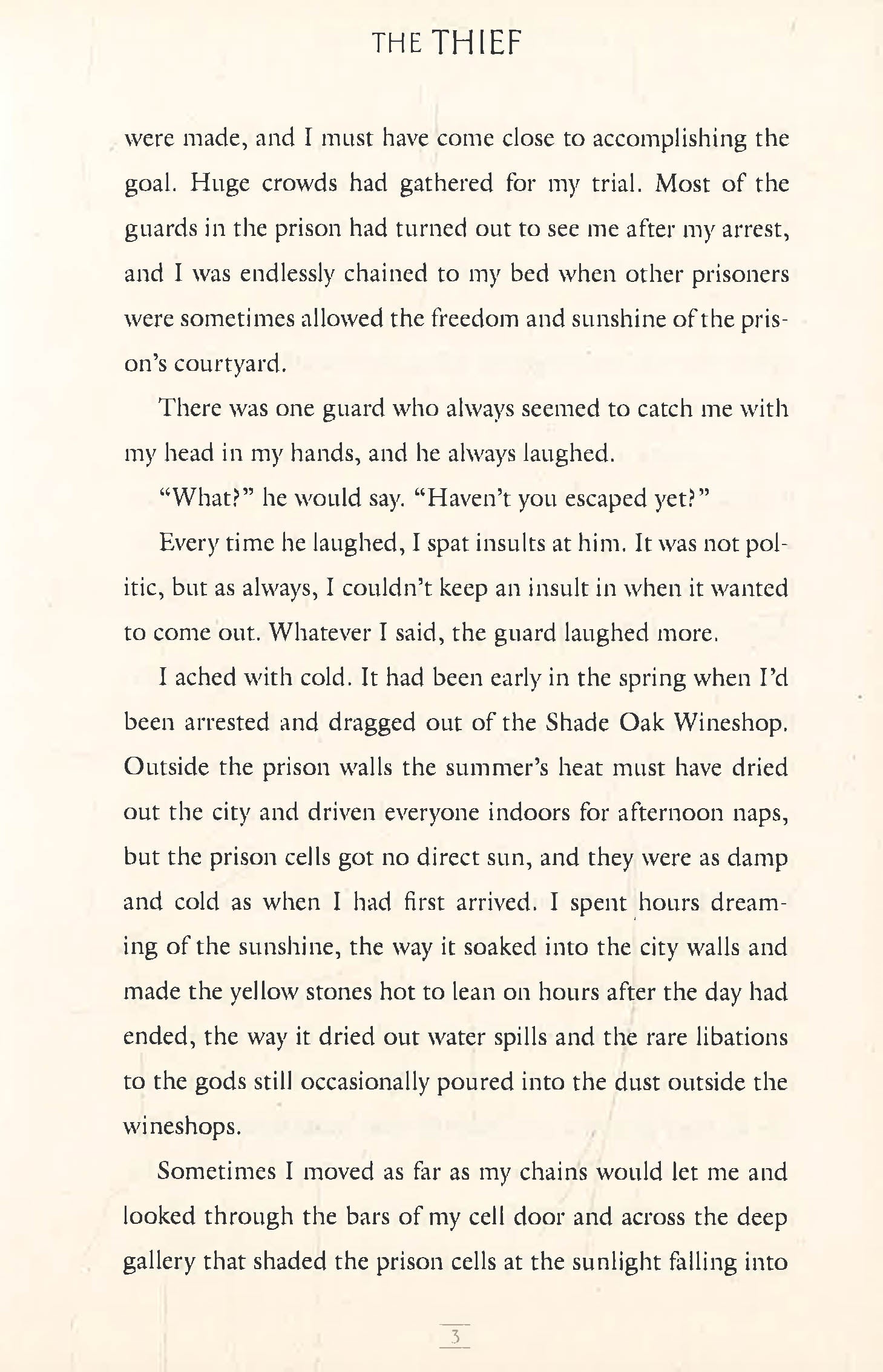 Eugenides, the queen's thief, can steal anything - or so he says. Then his boasting lands him in the king's prison, and his chances of escape look slim.