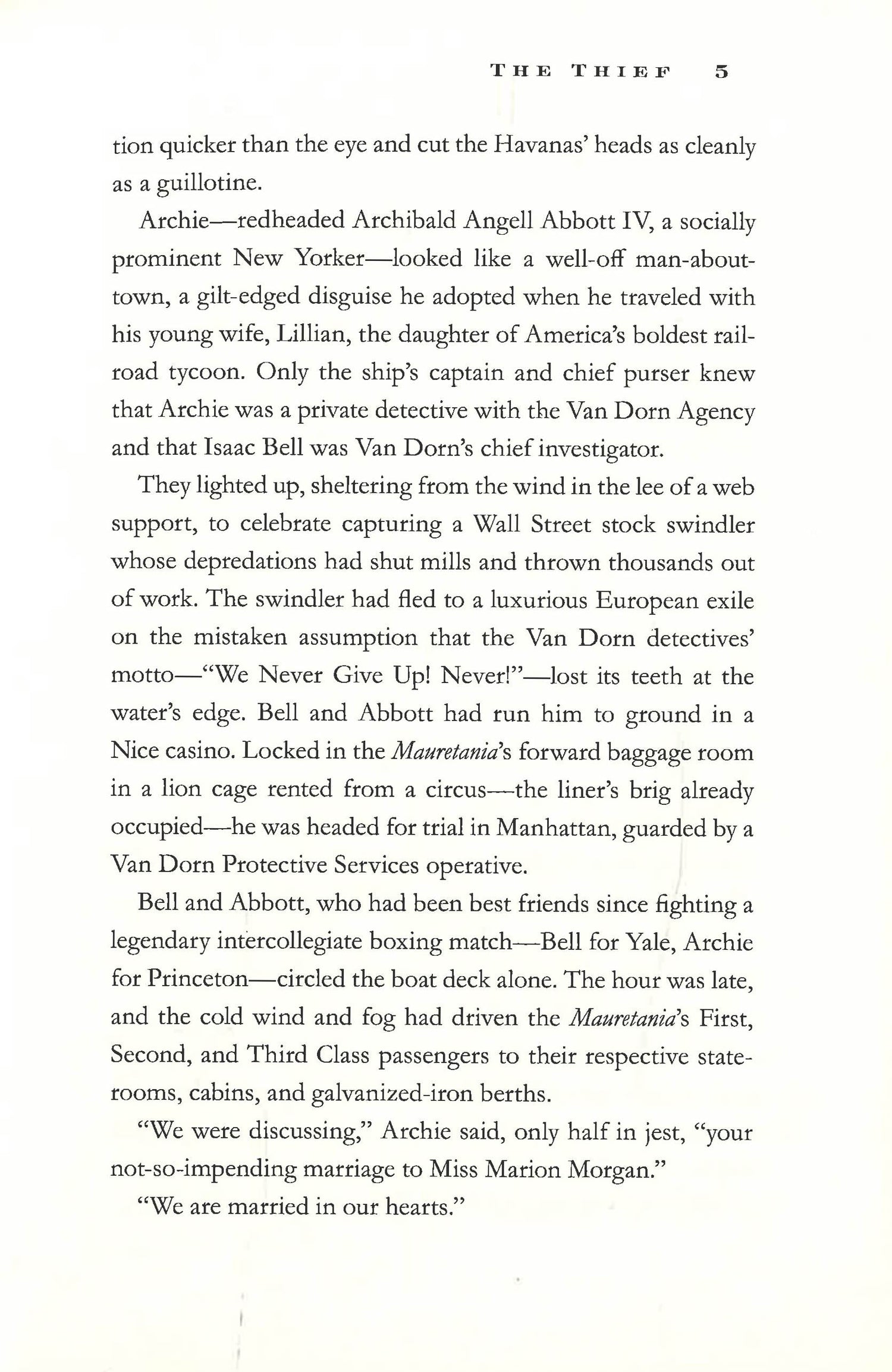 On the ocean liner Mauretania, two European scientists with a dramatic new invention are barely rescued from abduction by the Van Dorn Detective Agency's intrepid chief investigator, Isaac Bell. Unfortunately, they are not so lucky the second time. The thugs attack again-and this time one of the scientists dies. What are they holding that is so precious? Only something that will revolutionize business and popular culture-and perhaps something more.