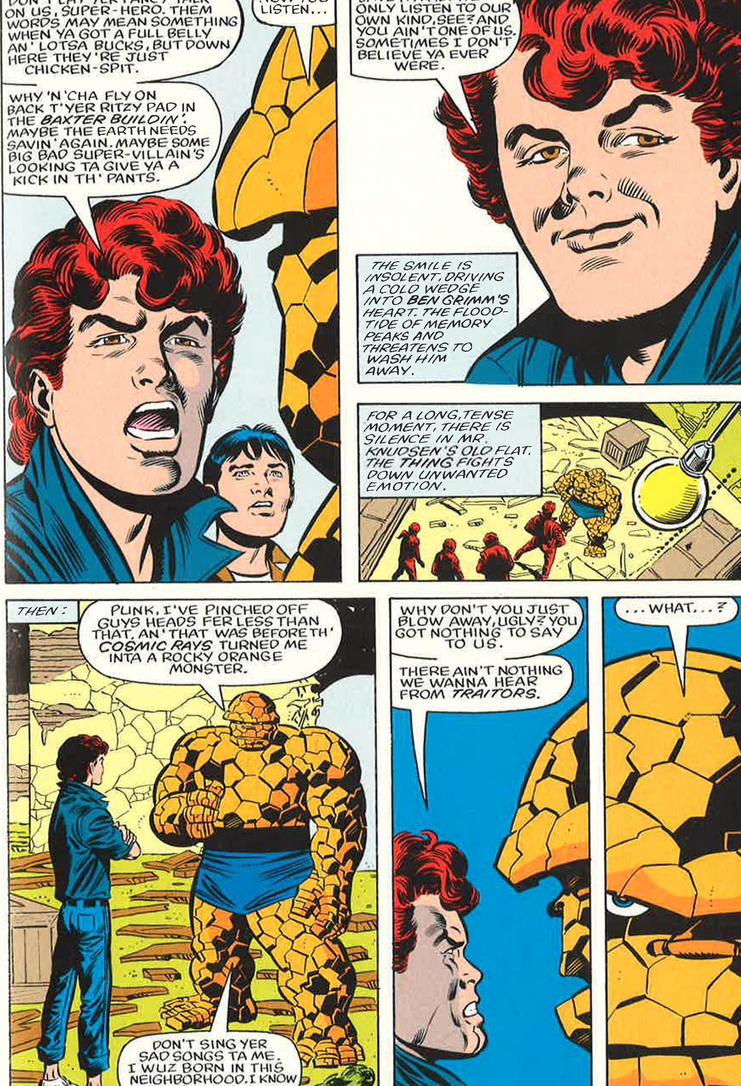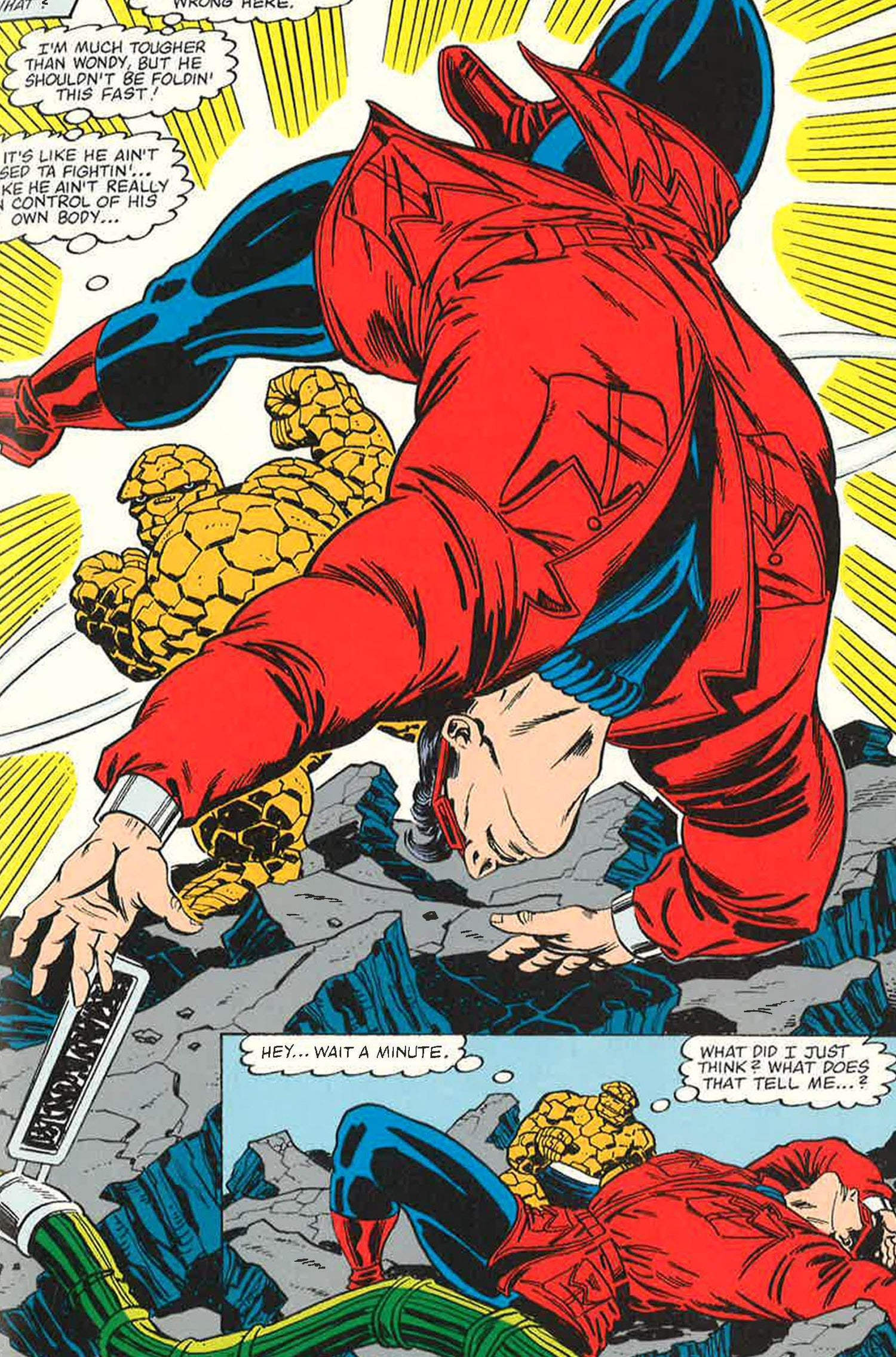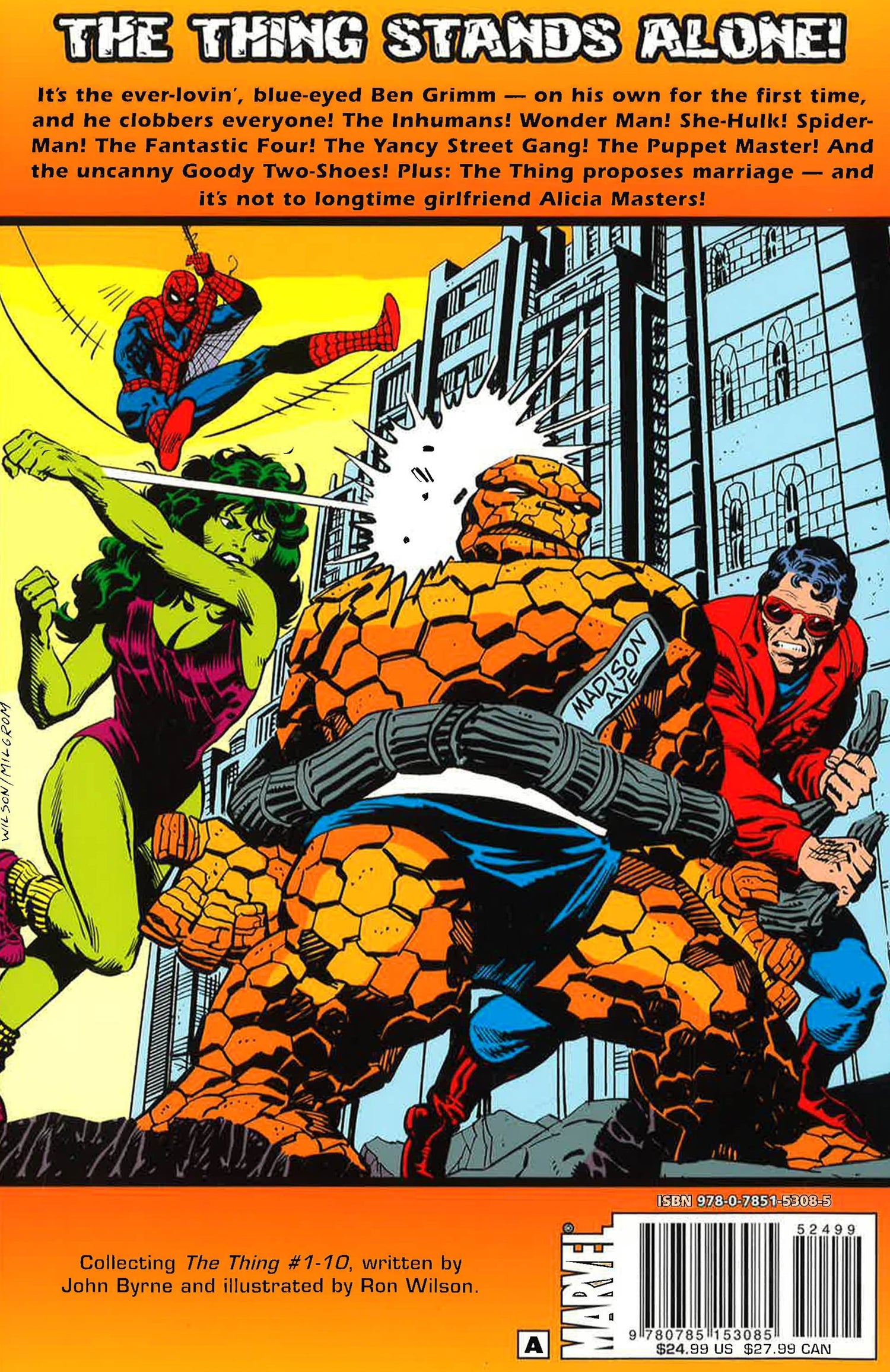 It's Ben Grimm - the ever-lovin', blue-eyed Thing- on his own for the first time, and he clobbers everyone! The Inhumans! Wonder Man! She-Hulk! Spider-Man! The Fantastic Four! The Yancy Street Gang! The Puppet Master! And the uncanny Goody Two-Shoes! Plus: The Thing proposes marriage... and it's not to Alicia Masters!