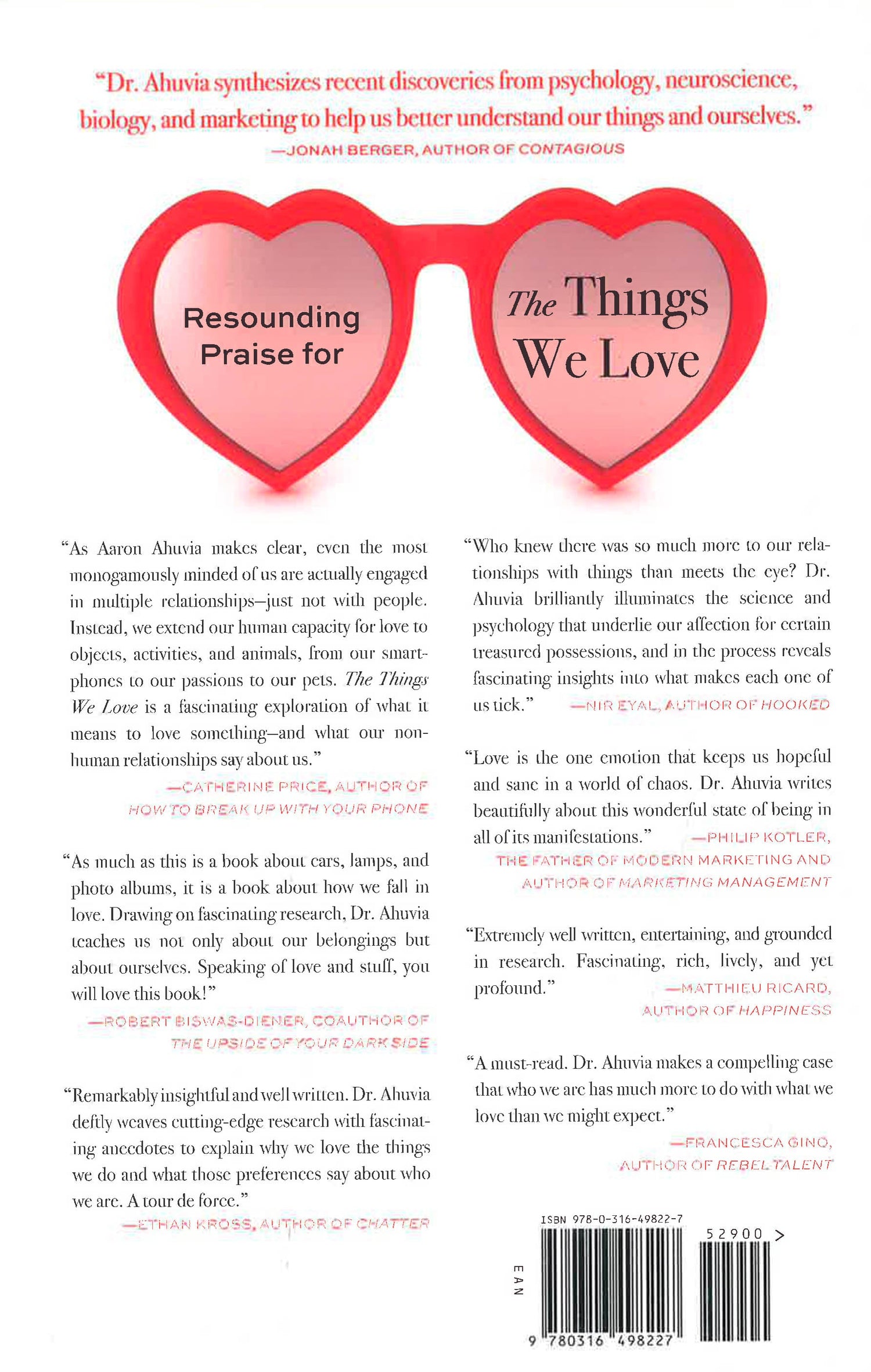 In The Things We Love, Dr. Aaron Ahuvia presents astonishing discoveries that prove we are far less “rational” than we think when it comes to our possessions and hobbies. In fact, we have passionate relationships with the things we love, and these relationships are driven by influences deep within our culture and our biology. Some of our passions are sudden, obsessive, and fleeting; others are devoted and lifelong affairs. Some turn dark: we become hoarders, or would prefer to destroy certain objects rather than let anyone else own them. And as technology improves, becoming increasingly addictive, one wonders: might our lives become so dominated by our emotional ties to things that we lose interest in other people?