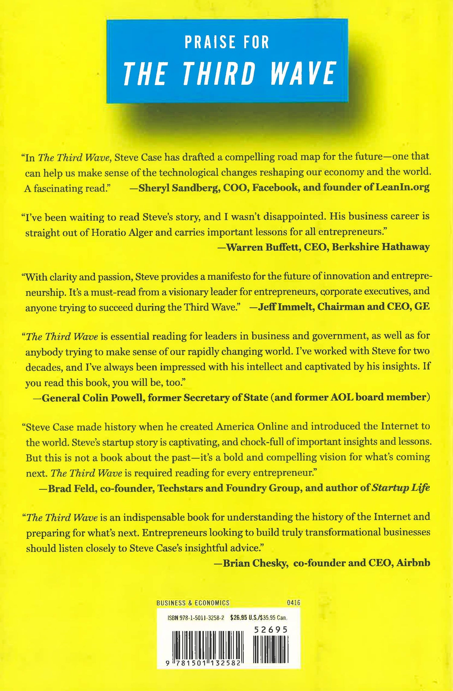 New York Times Bestseller Wall Street Journal Bestseller One of America's most accomplished entrepreneurs--a pioneer who made the Internet part of everyday life and orchestrated the largest merger in the history of business--shares a roadmap for how anyone can succeed in a world of rapidly changing technology. Steve Case's career began when he cofounded America Online (AOL) in 1985. At the time, only three percent of Americans were online. It took a decade for AOL to achieve mainstream success, and there were many near-death experiences and back-to-the-wall pivots. AOL became the top performing company of the 1990s, and at its peak more than half of all consumer Internet traffic in the United States ran through the service. After Case engineered AOL's merger with Time Warner and he became Chairman of the combined business, Case oversaw the biggest media and communications empire in the world. In The Third Wave, which pays homage to the work of the futurist Alvin Toffler (from whom Case has borrowed the title, and whose work inspired him as a young man), Case takes us behind the scenes of some of the most consequential and riveting business decisions of our time while offering illuminating insights from decades of working as an entrepreneur, an investor, a philanthropist, and an advocate for sensible bipartisan policies. We are entering, as Case explains, a new paradigm called the "Third Wave" of the Internet. The first wave saw AOL and other companies lay the foundation for consumers to connect to the Internet. The second wave saw companies like Google and Facebook build on top of the Internet to create search and social networking capabilities, while apps like Snapchat and Instagram leverage the smartphone revolution. Now, Case argues, we're entering the Third Wave: a period in which entrepreneurs will vastly transform major "real world" sectors like health, education, transportation, energy, and food--and in the process change the way we live our daily lives. But success in the Third Wave will require a different skill set, and Case outlines the path forward. The Third Wave is part memoir, part manifesto, and part playbook for the future. With passion and clarity, Case explains the ways in which newly emerging technology companies (a growing number of which, he argues, will not be based in Silicon Valley) will have to rethink their relationships with customers, with competitors, and with governments; and offers advice for how entrepreneurs can make winning business decisions and strategies--and how all of us can make sense of this changing digital age.