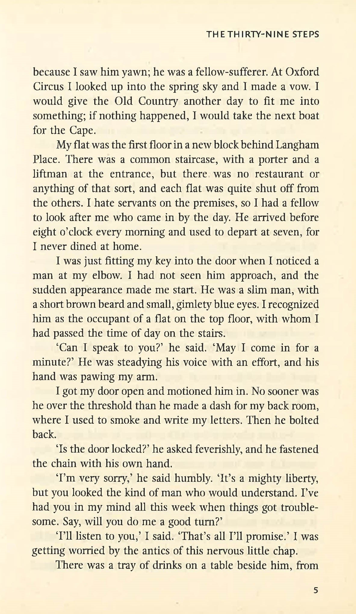 HarperCollins is proud to present its range of best-loved, essential classics. `I snapped the switch, but there was nobody there. Then I saw something in the far corner which made me drop my cigar and fall into a cold sweat.' When Richard Hannay is warned of an assassination plot that has the potential to take Britain into a war, and then a few days later discovers the murdered body of the American that warned him in his flat, he becomes a prime suspect. He flees to the moors of Scotland and a spirited chase begins as he is pursued by the police and the German spies involved with stealing British plans. Buchan's tale unfolds into one of the seminal and most influential 'chase' books, mimicked by many, yet unrivalled in the tension and mystery created by his writing. Buchan reveres Hannay as an ordinary man who puts his country's good before his own and the classic themes of the novel influenced many films and subsequent 'man-on-the-run' novels.