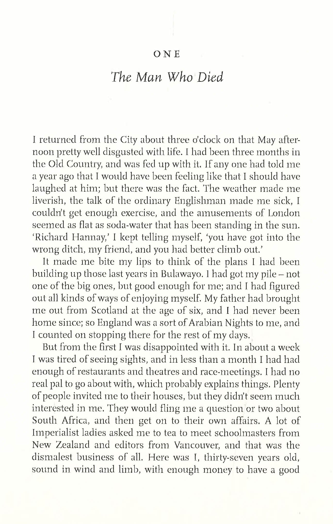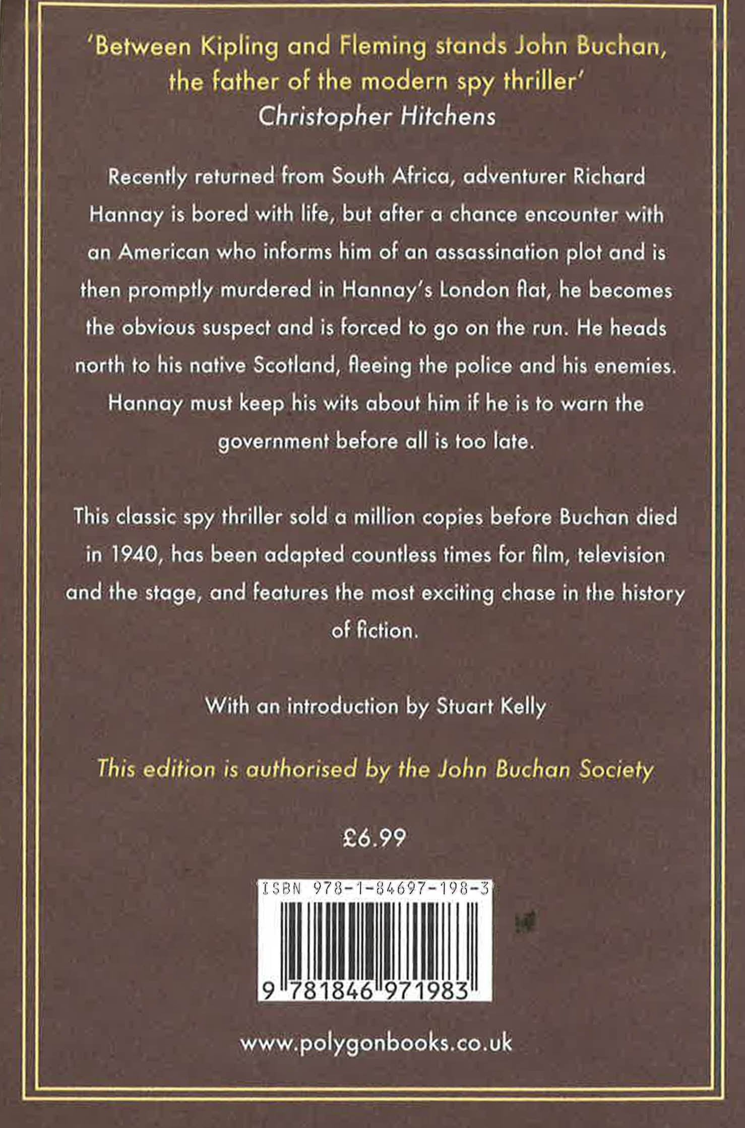 Recently returned from South Africa, adventurer Richard Hannay is bored with life, but after a chance encounter with an American who informs him of an assassination plot and is then promptly murdered in Hannay?s London flat, he becomes the obvious suspect and is forced to go on the run. He heads north to his native Scotland, fleeing the police and his enemies. Hannay must keep his wits about him if he is to warn the government before all is too late.