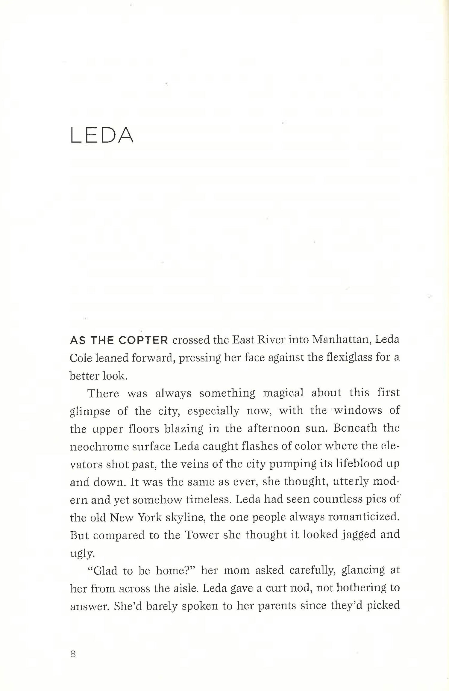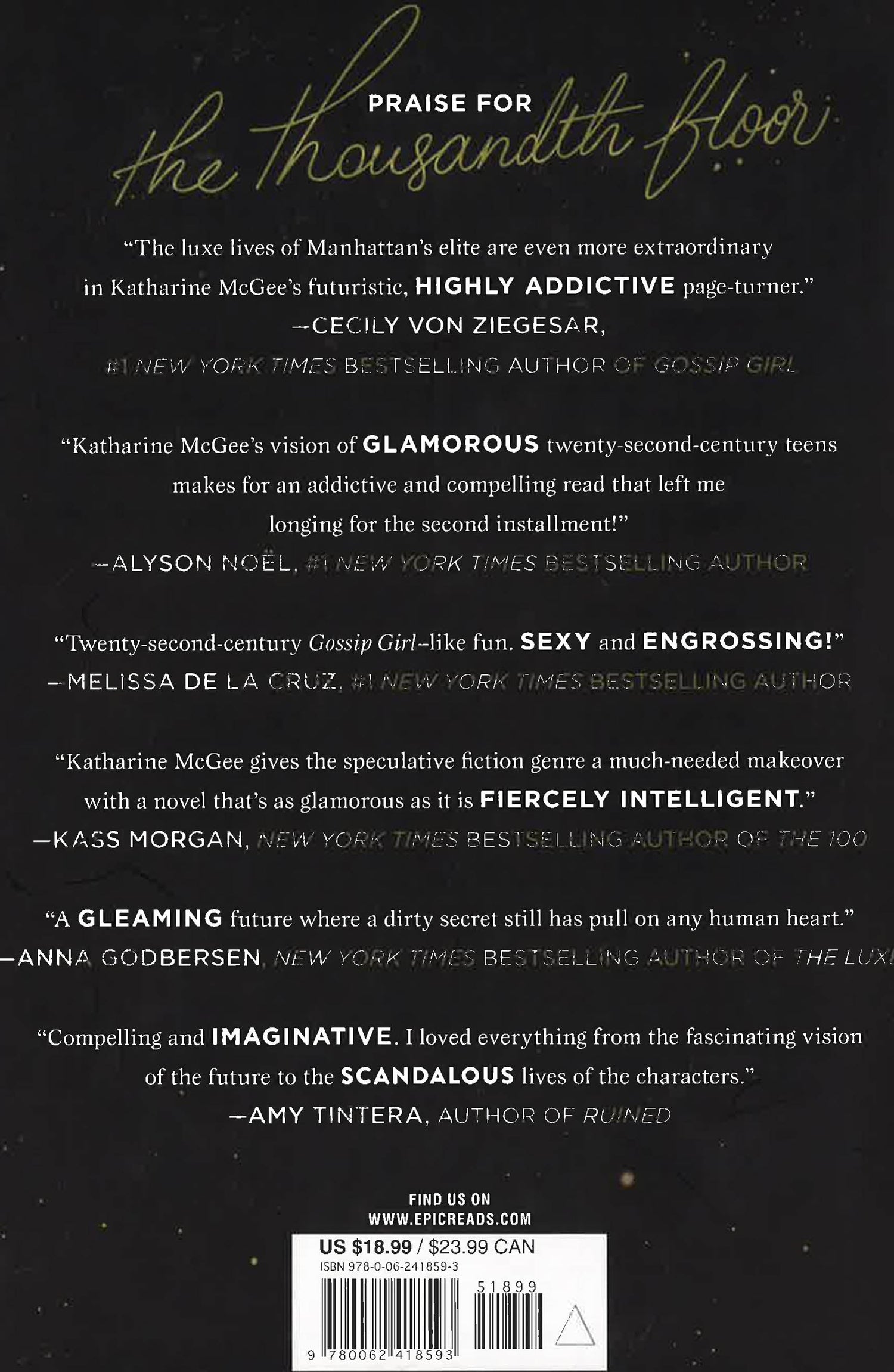 A hundred years in the future, New York is a city of innovation and dreams. But people never change: everyone here wants something . . . and everyone has something to lose.Leda Cole’s flawless exterior belies a secret addiction - to a drug she never should have tried and a boy she never should have touched.Eris Dodd-Radson’s beautiful, carefree life falls to pieces when a heartbreaking betrayal tears her family apart.Rylin Myers’s job on one of the highest floors sweeps her into a world - and a romance - she never imagined . . . but will her new life cost Rylin her old one?Watt Bakradi is a tech genius with a secret: he knows everything about everyone. But when he’s hired to spy by an upper-floor girl, he finds himself caught up in a complicated web of lies.And living above everyone else on the thousandth floor is Avery Fuller, the girl genetically designed to be perfect. The girl who seems to have it all - yet is tormented by the one thing she can never have.