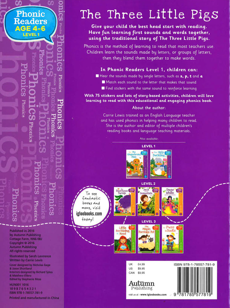 Give your child the best head start with reading. Have fun learning first sounds and words together, using the traditional story of The Three Little Pigs. Phonics is the method of learning to read that most teachers use. Children learn the sounds made by letters, or groups of letters, then blend them together to make words.e Pigs.