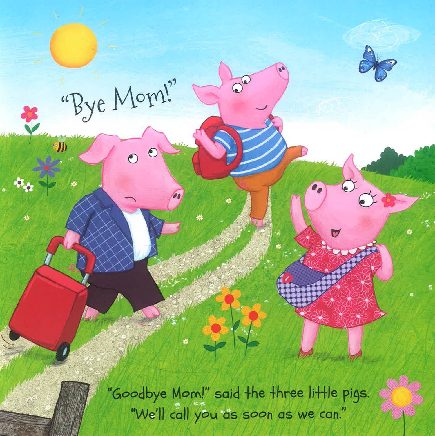 My Fairytale Time: The Three Little Pigs is an entertaining story about three pigs that leave their childhood home to make new lives for themselves. They each build a house that a mischievous wolf tries to break down by huffing and puffing. The final house is made of brick, so that doesn’t work and so he tries the chimney. But the three little pigs are ready!