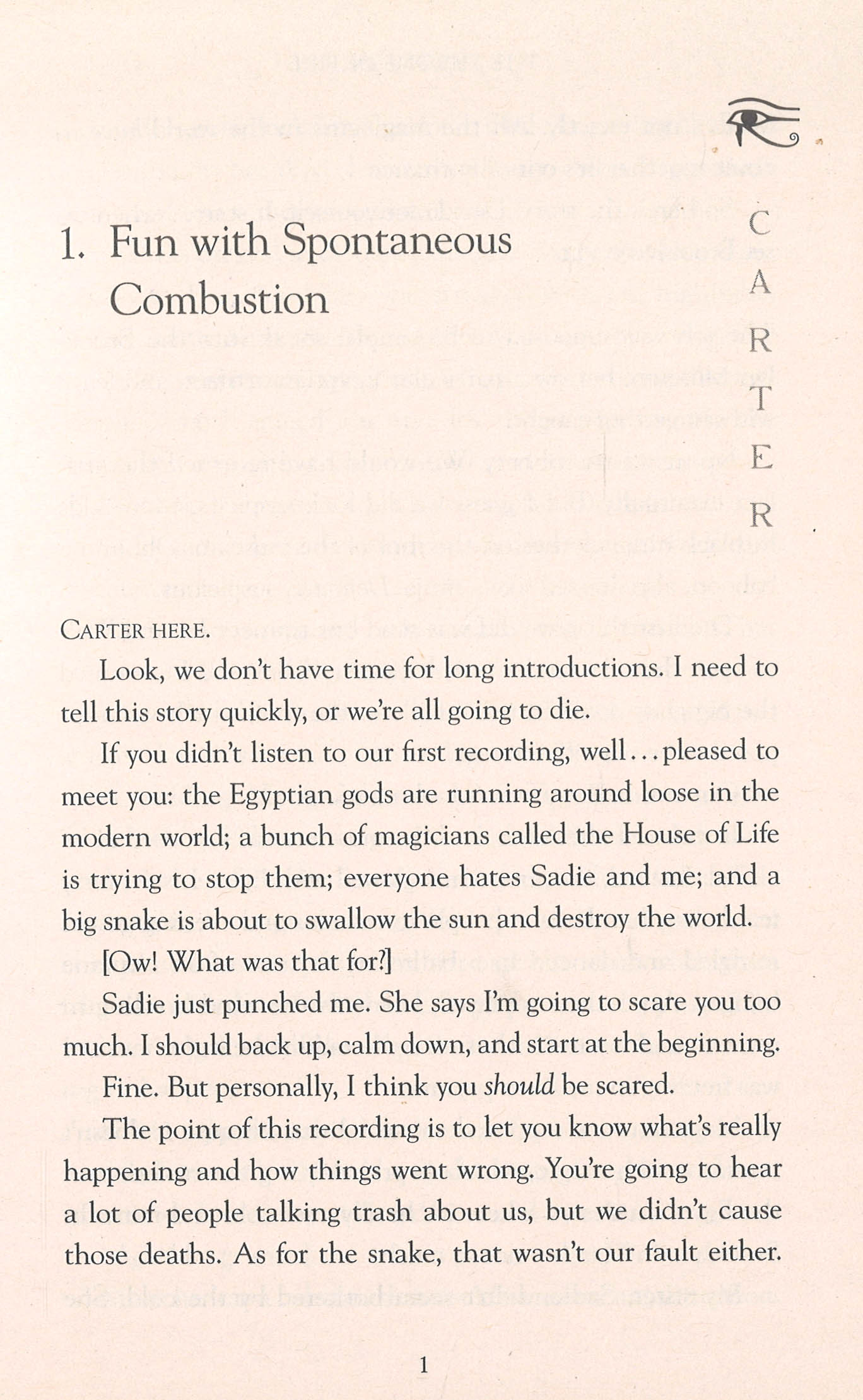 In this exciting second installment of the three-book series, Carter and Sadie, offspring of the brilliant Egyptologist Dr. Julius Kane, embark on a worldwide search for the Book of Ra, but the House of Life and the gods of chaos are determined to stop them.