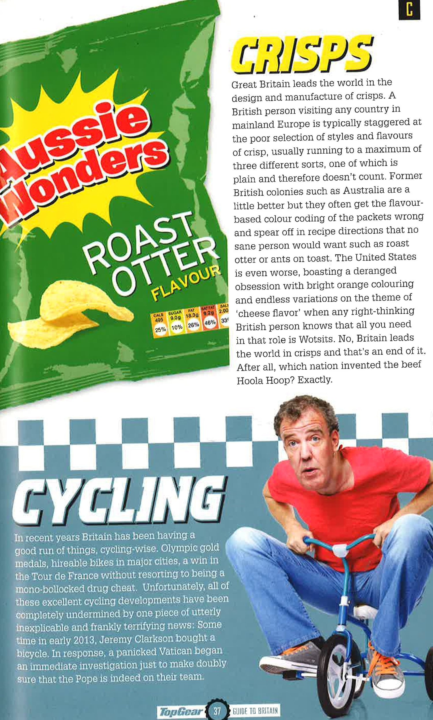 For over ten years, Top Gear has been travelling all over Britain in the course of making the world's best programme about cars, driving, and three men in smart-casual clothes shouting at each other. So, who better to assemble a guide to Britain itself with all its glories, quirks and multiple words for bread rolls? This book is not only a guide for outsiders; it is an invaluable reference manual for Britons themselves, like a mirror held up to our very souls.* Join us then, as we travel from A-Z cataloguing and making moderately flippant remarks about every aspect of life and living in the best country in the world after New Zealand, Denmark, probably Canada and some bits of France.