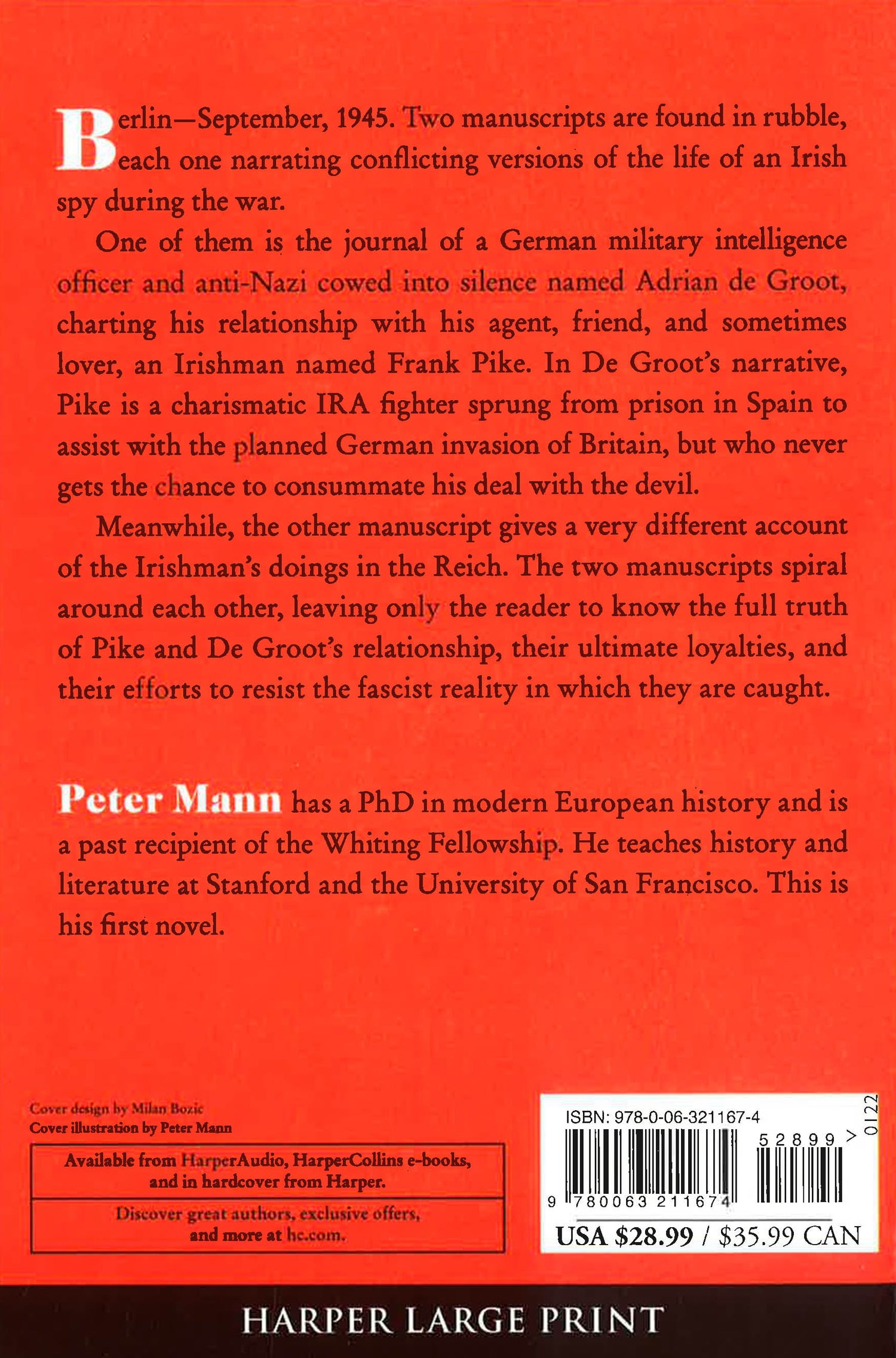 Berlin--September, 1945. Two manuscripts are found in rubble, each one narrating conflicting versions of the life of an Irish spy during the war.