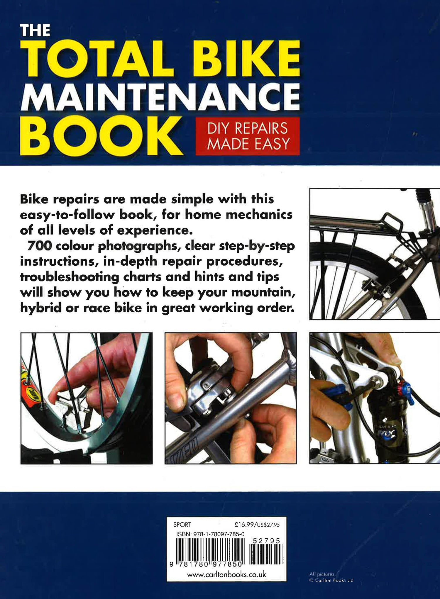The Total Bike Maintenance Book is a comprehensive guide to keeping your prized machine - whether road, hybrid, or mountain - in tip-top condition. Written by a leading expert, this straightforward, easy-to-understand manual provides detailed information on each mechanical area of the bike, with tips and troubleshooting ideas for every problem that could arise. From simple repairs to complex maintenance, the solution is here, illustrated with step-by-step photographic instructions.