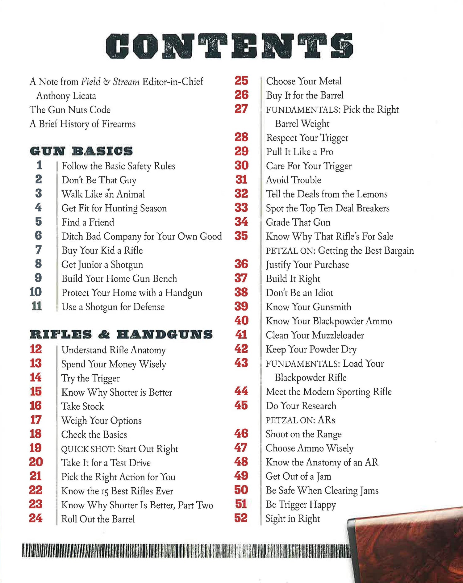 The Ultimate Gun Guide - 335 Essential Shooting Tips and Techniques Choose the Right Gun The complete guide to figuring out what you really need, and then picking the right shotgun, rifle, handgun, and ammo for whatever sport you want. Shoot Better Increase your rifle accuracy, boost your shotgun scores, and come home with game instead of excuses. Hunt Smarter Field-tested tips on how to make tough shots on big game, get more ducks, fool a gobbler, and much, much more. Stay Safe The plain facts about the best hardware for home defense, and how to use it safely to protect your family, as well as solid advice on shooting safety in the field.
