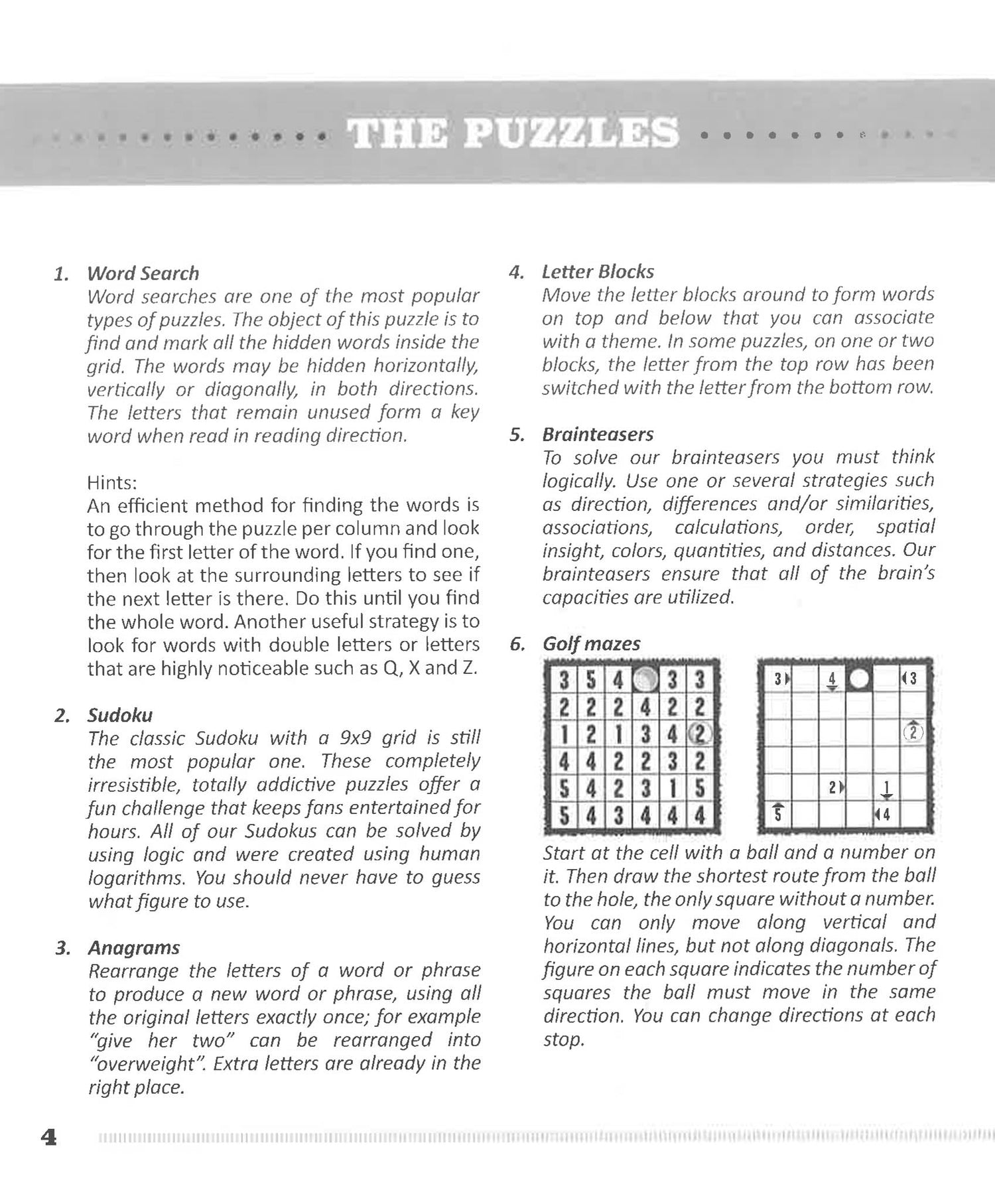 This newest addition to the Train Your Brain collection includes 156 unique visual puzzles in a variety of styles that will stretch, engage, and entertain. These puzzles go beyond your average word search or crossword and include brainteasers, binarios®, golf mazes, letter blocks, anagrams, word pyramids, connects, doodle puzzles, sudoku, and more.