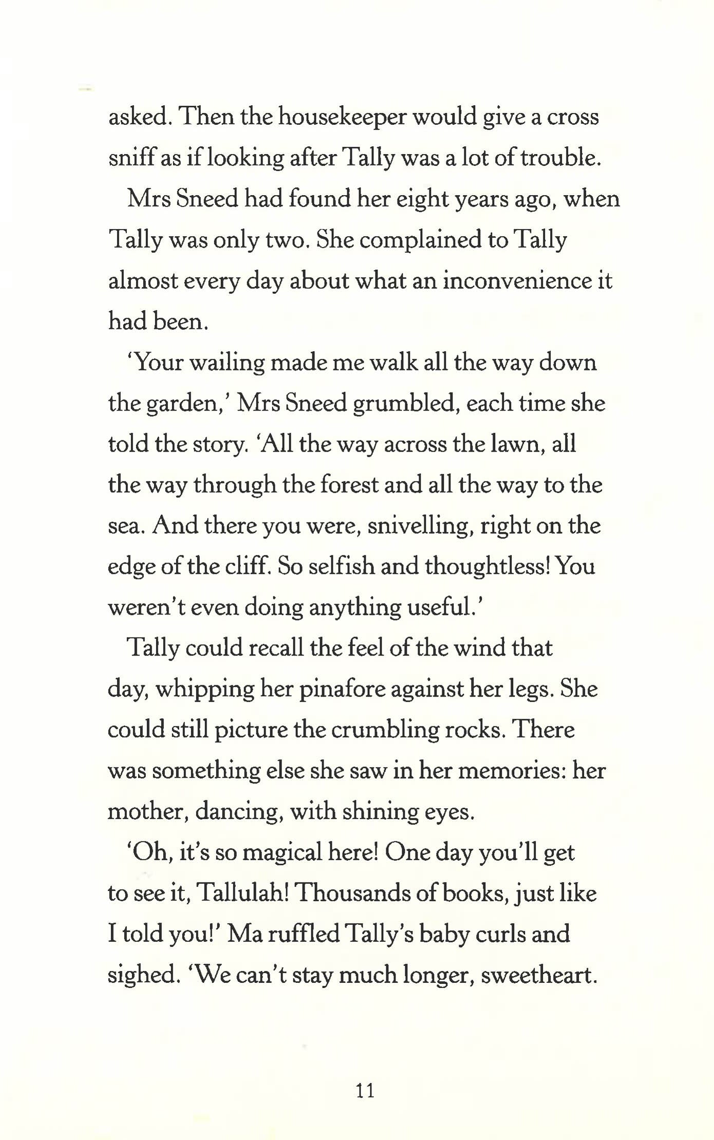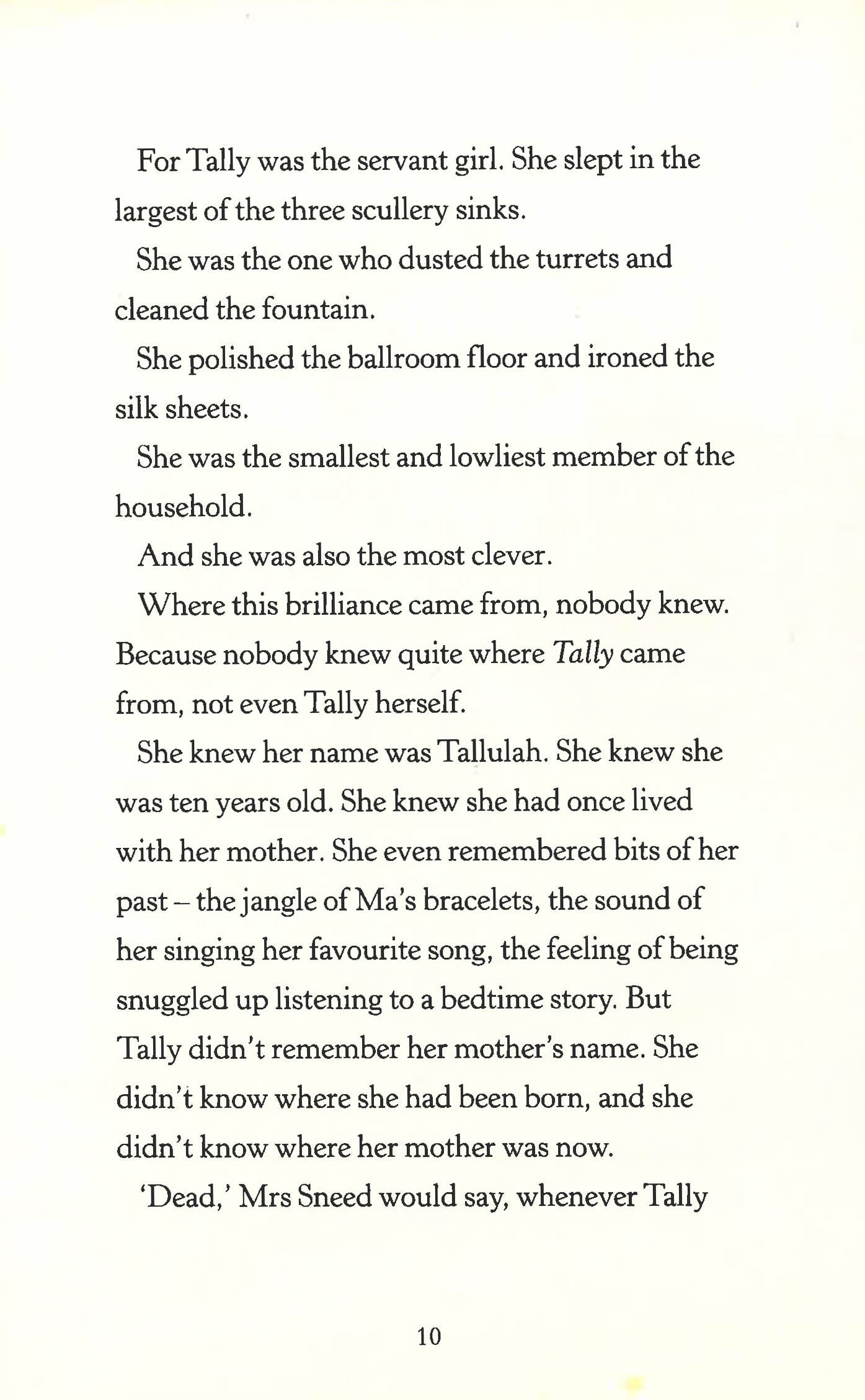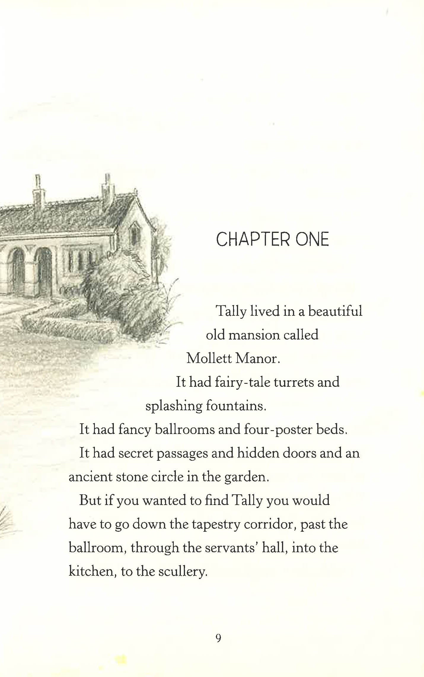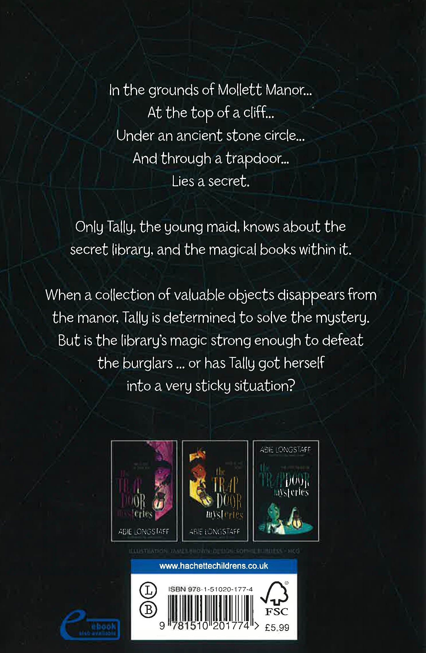 The first book in The Trapdoor Mysteries, a series about Tally, a code-breaking, animal-loving servant girl and her best friend, a squirrel named Squill, who solve mysteries with the help of a secret library... The first book in The Trapdoor Mysteries, a series about Tally, a code-breaking, animal-loving servant girl and her best friend, a squirrel named Squill, who solve mysteries with the help of a secret library...Ten-year-old Tally is a servant girl at Mollett Manor. She sleeps in the scullery sink, and spends her days scrubbing, polishing and ironing (when she's not secretly reading books). Then Tally and her squirrel friend, Squill, find a secret library hidden under the manor - a magical library where the books come to life! When Mollett Manor is burgled, can Tally use the knowledge she finds in the books to catch the criminals? Can they even help her solve the mystery of her missing mother?