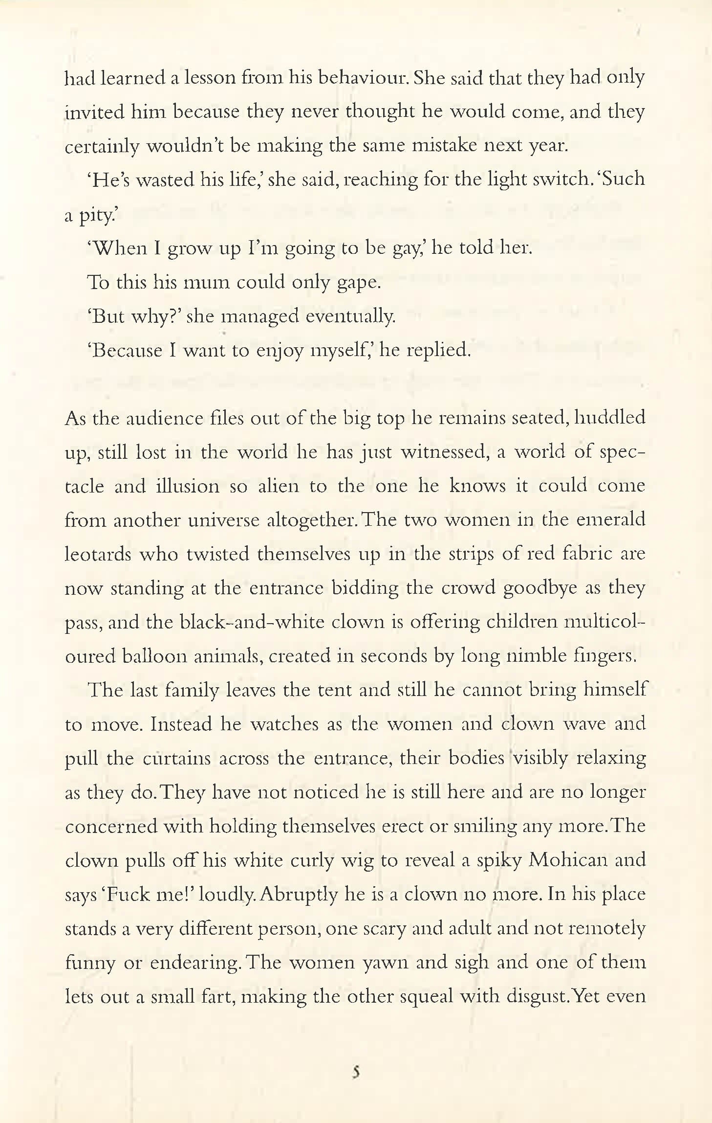 As a schoolboy he secretly hated his drab, ordered world; now, at the age of forty, he is finally fleeing from a life he can no longer handle when he stumbles upon the circus. Not knowing why, only that he must, he follows after it, determined to build a new home and family. The Trapeze Artist draws together the past, present and future of one life to create a work of startling dexterity and vision - a haunting and heartbreaking account of a child, a boy, a man, desperate to free himself from the suffocating weight of his desires, his family and his grief. It speaks of what it is to grow up gay in a straight world, to be unable to communicate with those you love, and above all, the longing to break away, and to swing higher and higher...