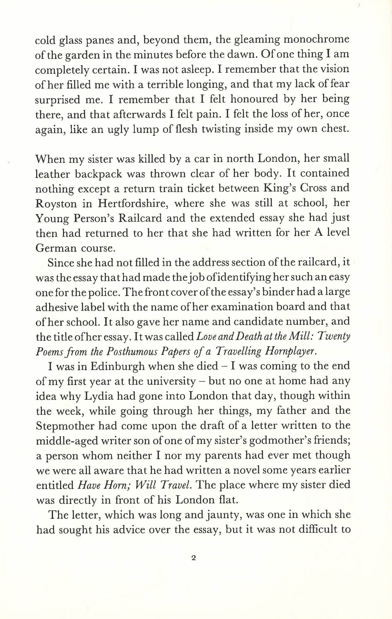 Stunning and difficult, Stella Goldman is programmed for maximum nuisance capacity, but when she discovers both her father's affair and her boyfriend's infidelity on the same day, she flees into the arms of kindly Pen, who speaks as though he's stepped out of Brief Encounter. Meanwhile, her friend Ellen struggles to come to terms with the death of her sister, Lydia, whose ghost haunts not only her and her father Roland, but the beloved Goldmans (from Brother of the More Famous Jack), too. Along with eccentric professors, wicked monks, and the titular travelling hornplayer, their lives collide in a breathtaking finale.