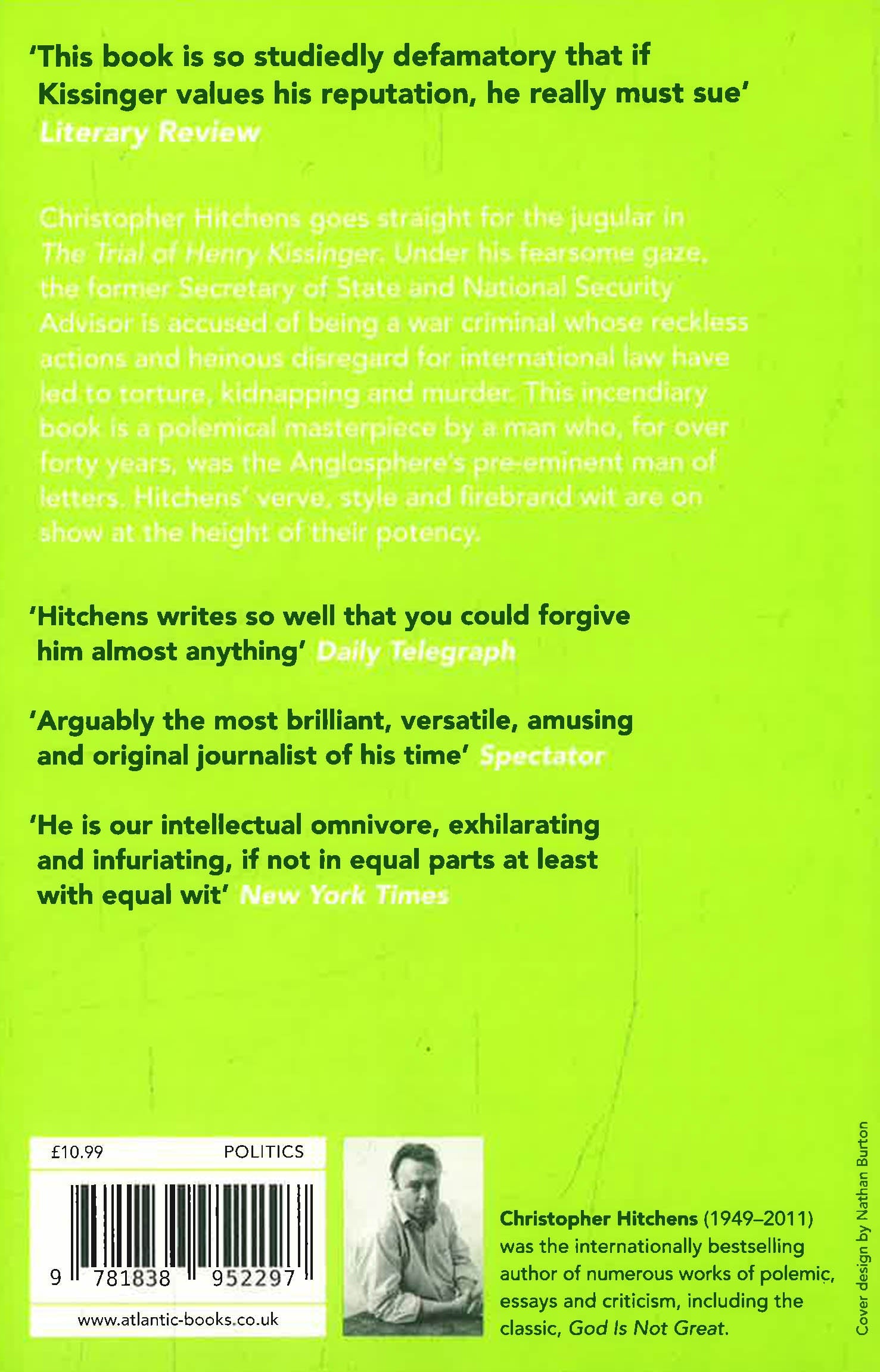 This book is a polemical masterpiece by a man who, for forty years, was the Angloshpere's preeminent man of letters. In The Trial of Henry Kissinger, Hitchens' verve, style and firebrand wit are on show at the height of their potency.
