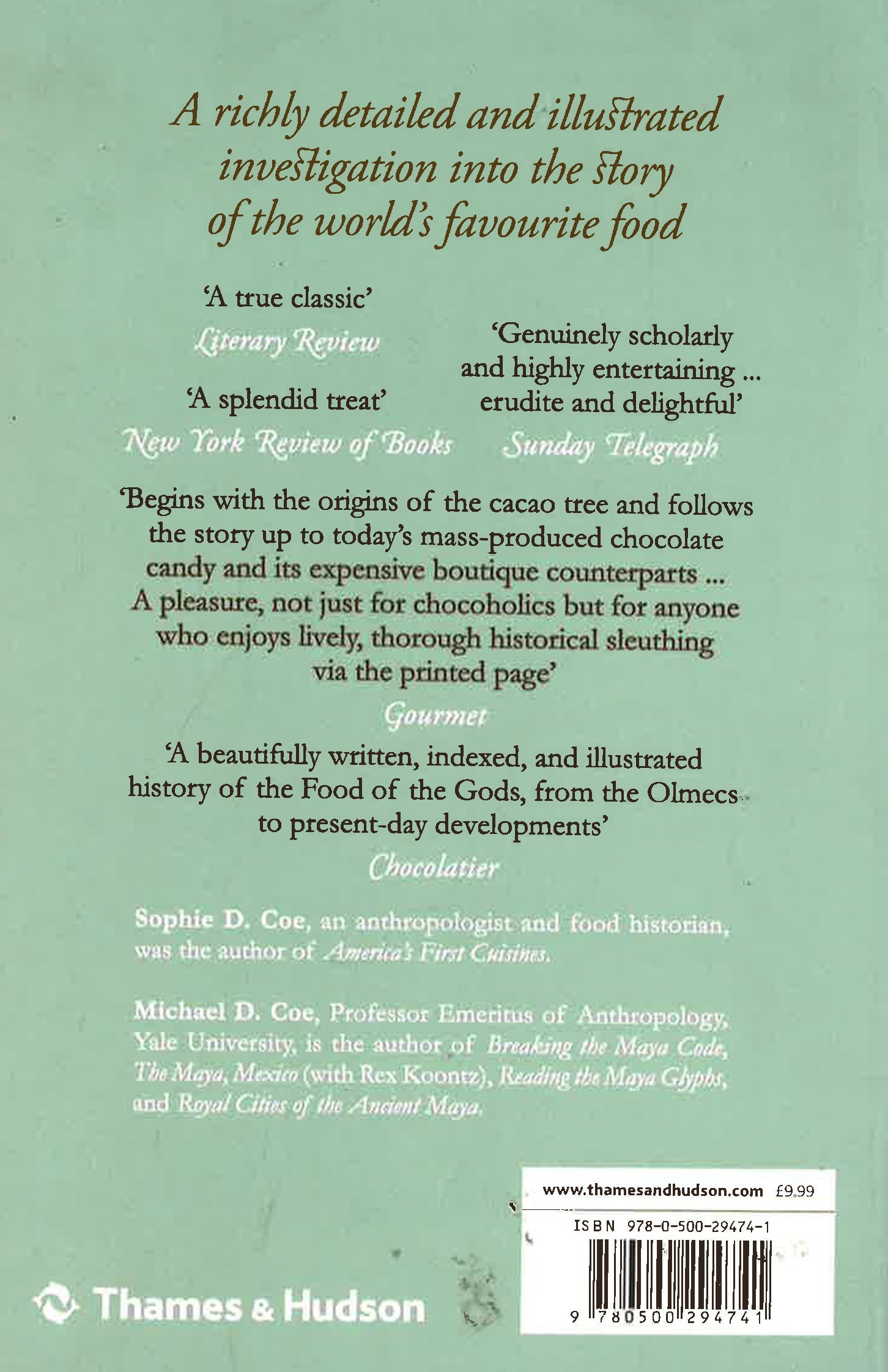 Chocolate - 'the food of the Gods' - has had a long and eventful history. Its story is expertly told here by the doyen of Maya studies, Michael Coe, and his late wife, Sophie. The book begins 3,000 years ago in the Mexican jungles and goes on to draw on aspects of archaeology, botany and socio-economics. Used as currency and traded by the Aztecs, chocolate arrived in Europe via the conquistadors, and was soon a favourite drink with aristocrats. By the 19th century and industrialization, chocolate became a food for the masses - until its revival in our own time as a luxury item. Chocolate has also been giving up some of its secrets to modern neuroscientists, who have been investigating how flavour perception is mediated by the human brain. And, finally, the book closes with two contemporary accounts of how chocolate manufacturers have (or have not) been dealing with the ethical side of the industry.