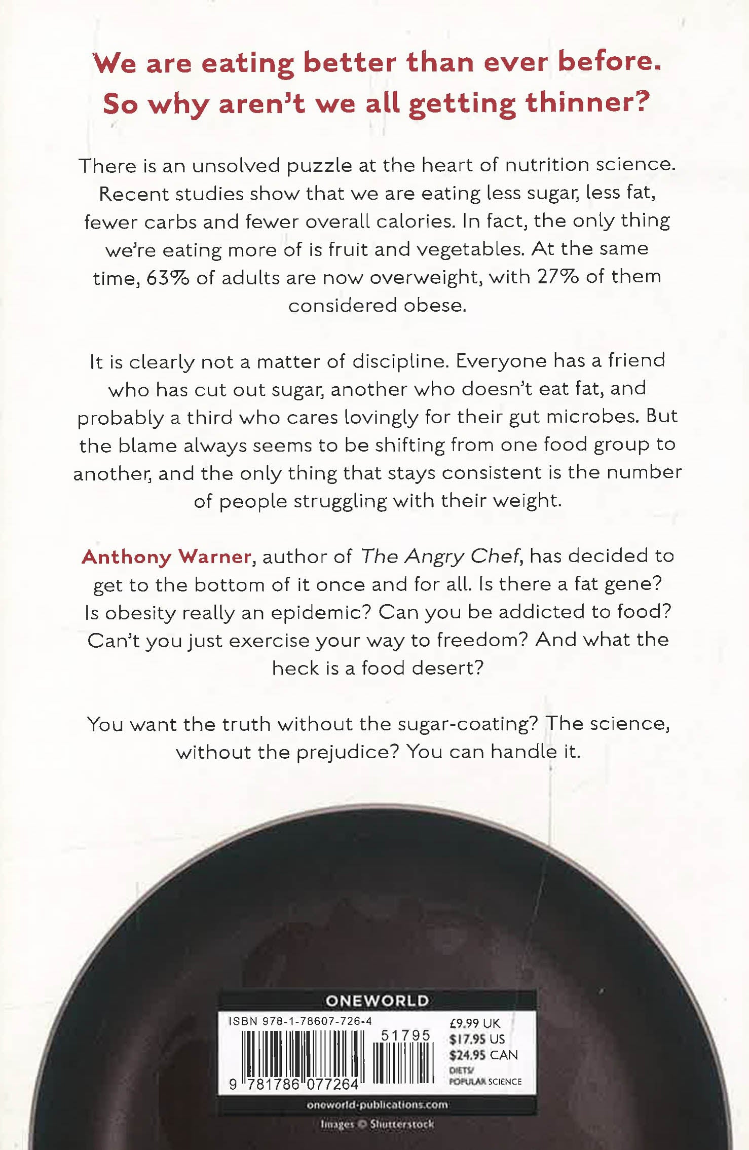 Most people try out diets just to see if they work. One friend cuts out sugar, a second cuts out fat. Another mumbles something about gut microbes. Even scientists still seem to be arguing about what causes obesity, so what hope is there for the rest of us? Anthony Warner, author of The Angry Chef, has decided to get to the bottom of it once and for all. Is obesity really an epidemic? Can you be addicted to food? Can't you just exercise your way to freedom? And what the heck is a food desert? You want the truth? The science, without the prejudice? You can handle it.