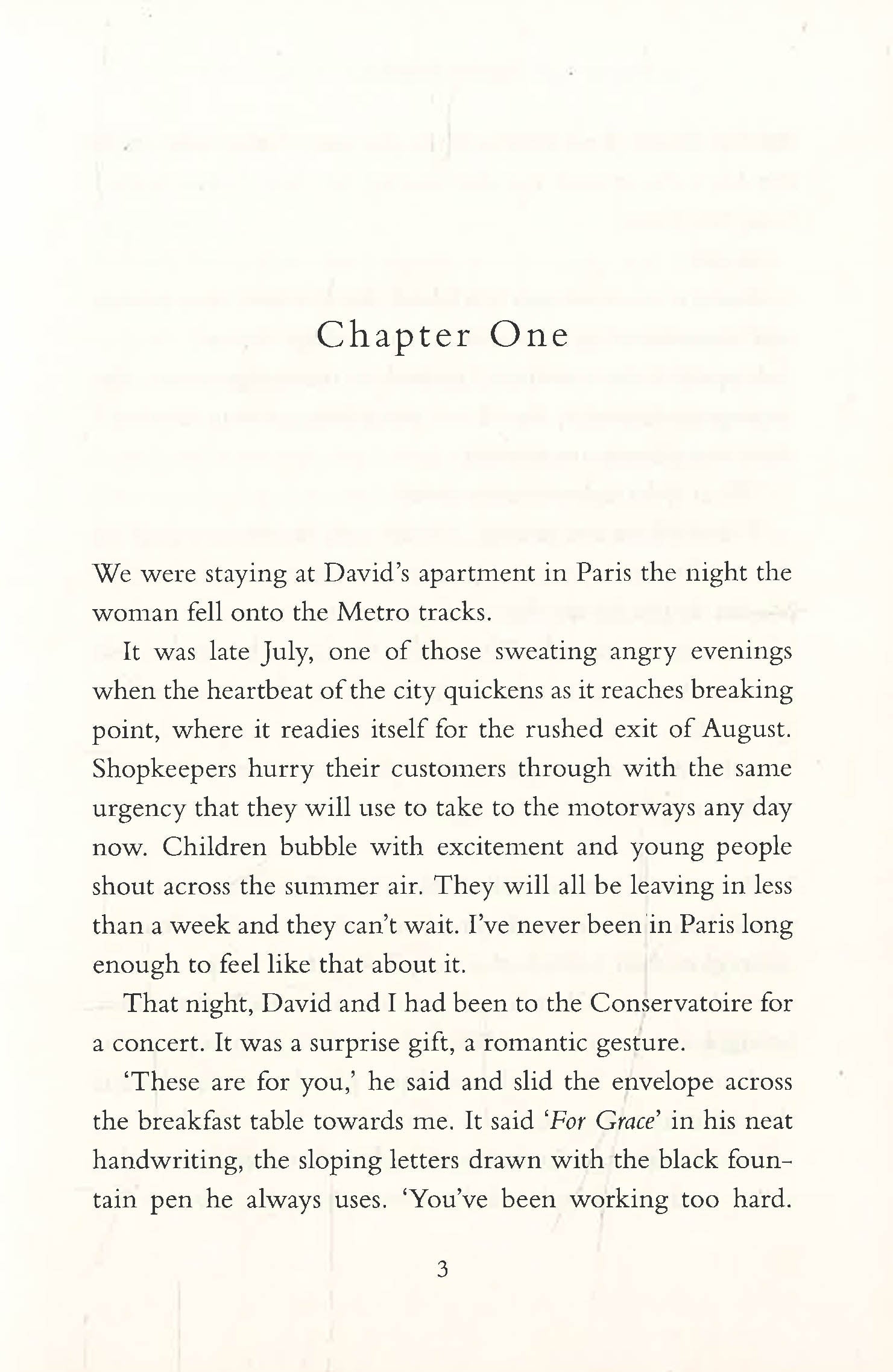 Grace Atherton, a talented cellist, is in love with David. Together in their apartment in Paris, Grace and David are happy until an unexpected event changes everything.