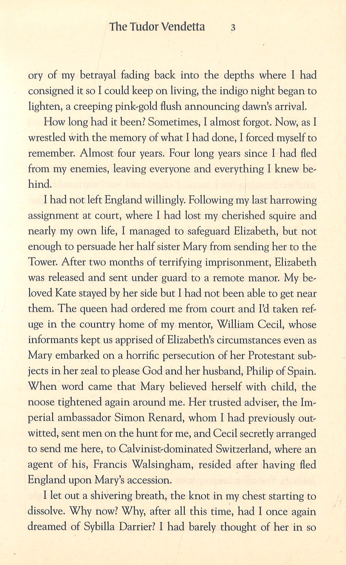 THE TUDOR VENDETTA is the final book in the ELIZABETH'S SPYMASTER trilogy.