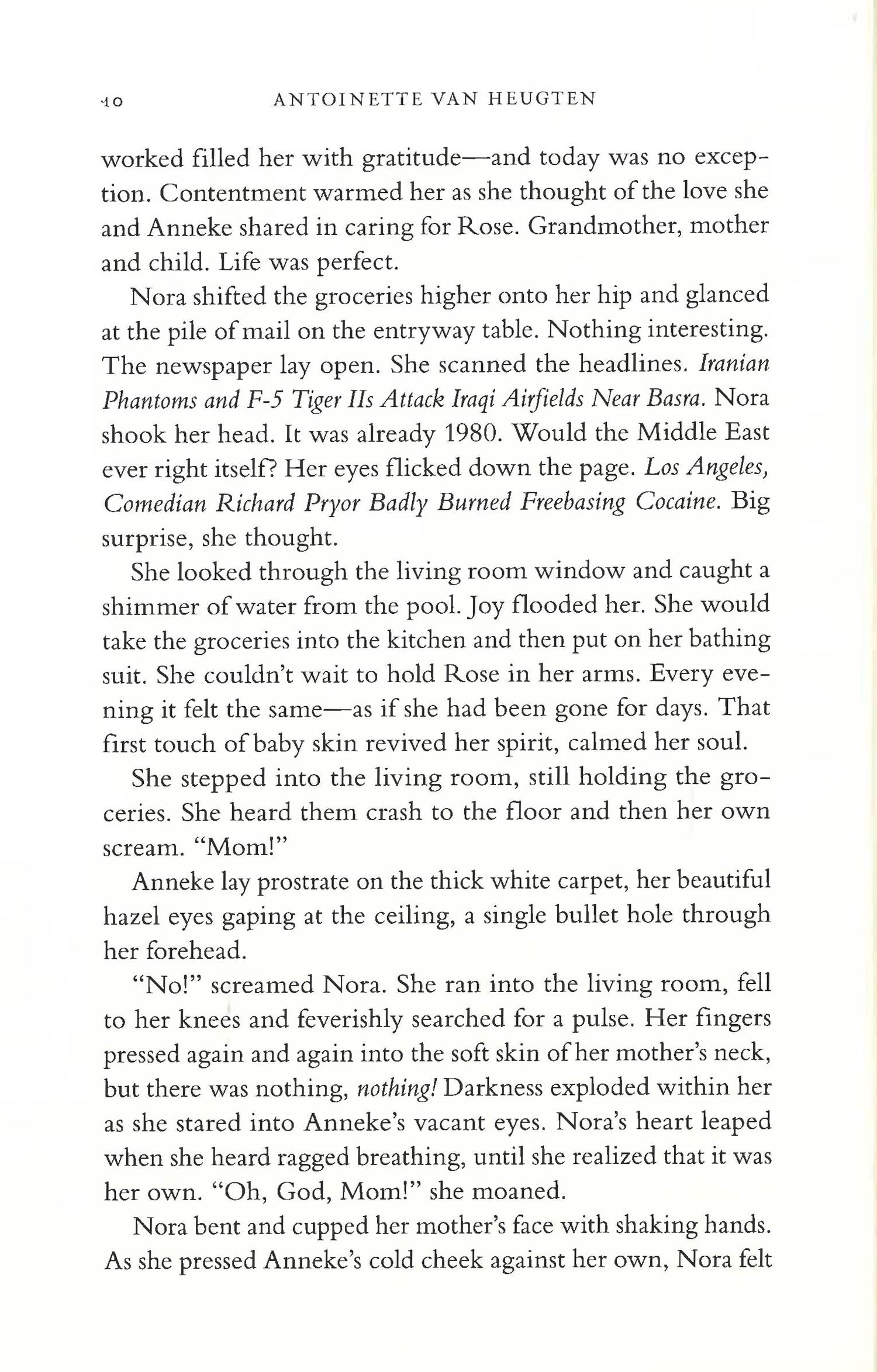 In a riveting exploration of the power the past wields over the present, critically acclaimed author Antoinette van Heugten writes the story of a woman whose child's life hangs in the balance, forcing her to confront the roots of her family's troubled history in the dark days of World War II... It's the stuff of nightmares: Nora de Jong returns home from work one ordinary day to find her mother has been murdered. Her infant daughter is missing. And the only clue is the body of an unknown man on the living-room floor, clutching a Luger in his cold, dead hand. Frantic to find Rose, Nora puts aside her grief and frustration with the local police to start her own search. But the contents of a locked metal box she finds in her parents' attic leave her with as many questions as answers--and suggest the killer was not a stranger. Saving her daughter means delving deeper into her family's darkest history, leading Nora half a world away to Amsterdam, where her own unsettled past and memories of painful heartbreak rush back to haunt her. As Nora feverishly pieces together the truth from an old family diary, she's drawn back to a city under Nazi occupation, where her mother's alliances may have long ago sealed her own-and Rose's--fate.